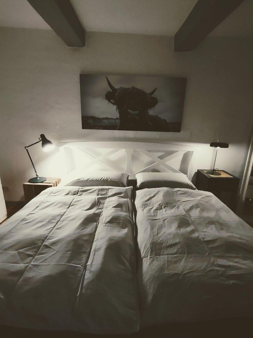Moin!Im idyllischen Reetdachhaus EULENHOF 1843 können Sie fernab des Trubels entspannen und sind gleichzeitig nur 15 Minuten von dem beliebten Küstenort St. Peter-Ording entfernt.Das denkmalgeschützte Haus aus dem Jahr 1843 befindet sich in Poppenbüll auf der Halbinsel Eiderstedt und kann mit maximal 8 Personen, inkl. Kindern, bezogen werden. Nachdem Sie den hofeigenen Deich passiert haben, fahren Sie entlang einer großzügigen Kieseinfahrt zum Haus, wo drei kostenfreie Parkplätze auf Sie warten. Durch das Tor gelangen Sie auf das weitläufige Grundstück (ca. 1.000 m²), das mit einem großen Garten, Gartenstühlen, einem Tisch und der Himmelsliege Tegernsee ausgestattet ist, die Ihnen exklusiv zur Verfügung stehen. Eine Gartensauna lädt nach einem langen Spaziergang zum Entspannen ein und bietet wohltuende Wärme und Gemütlichkeit.Nachdem Sie durch die Haustür eingetreten sind, führt der Flur zu einem ersten Bad, zum ersten Schlafzimmer und zum Zimmer mit Etagenbett und Babybett, alternativ kann man hier nachdem Saunabesuch entspannen. Angrenzend daran befindet sich ein weiteres Schlafzimmer, von dem aus Sie einen herrlichen Blick auf den Stall-Garten genießen können. Auch der Zugang zum zweiten Bad (mit Badewanne) befindet sich hier. Vom Flur aus gelangen Sie weiterhin in das gemütliche Dachgeschoss, wo sich das dritte Badezimmer und das vierte Schlafzimmer befinden, eine gemütliche Leseecke lädt hier zum Verweilen ein. Das Wohnzimmer, das an die offene Küche mit Essbereich grenzt, ist der zentrale Treffpunkt für alle. Ihre Urlaubswäsche können Sie im eigenen Waschraum mit Waschmaschine und Trockner erledigen. Hier stehen Ihnen auch ein Staubsauger, Besen, Wischmopp, Bügelbrett- und eisen und eine Wäschespinne zur Verfügung. Zusätzlich haben Sie hier die Möglichkeit, über eine zweite Haustür direkt in den Garten zu gelangen oder das Haus zu betreten.Hinweis zur Barrierefreiheit:Das 180 Jahre alte Bauernhaus ist leider nicht barrierefrei oder behindertengerecht, u.a. aufgrund der Wege zum Haus, der Treppe zum Dachgeschoss, der Stufen an den Eingängen sowie der Türleisten, die teilweise einige Zentimeter über dem Boden stehen.3 Tiere sind gegen Aufpreis und mit Anmeldung möglich. Hunde sind auf dem gesamten Gelände bitte an der Leine zu führen.Im kostenlosen Wäschepaket sind jeweils ein kleines und ein großes Handtuch pro Person enthalten. Ihre Saunahandtücher bringen Sie selbst mit oder können diese alternativ für 10 EUR pro Stück dazu buchen.Verpassen Sie nicht einen der schönsten Sonnenuntergänge Eiderstedts am Eulenhof.Wir wünschen Ihnen eine angenehme Zeit im Ferienhaus Eulenhof 1843 in Poppenbüll!