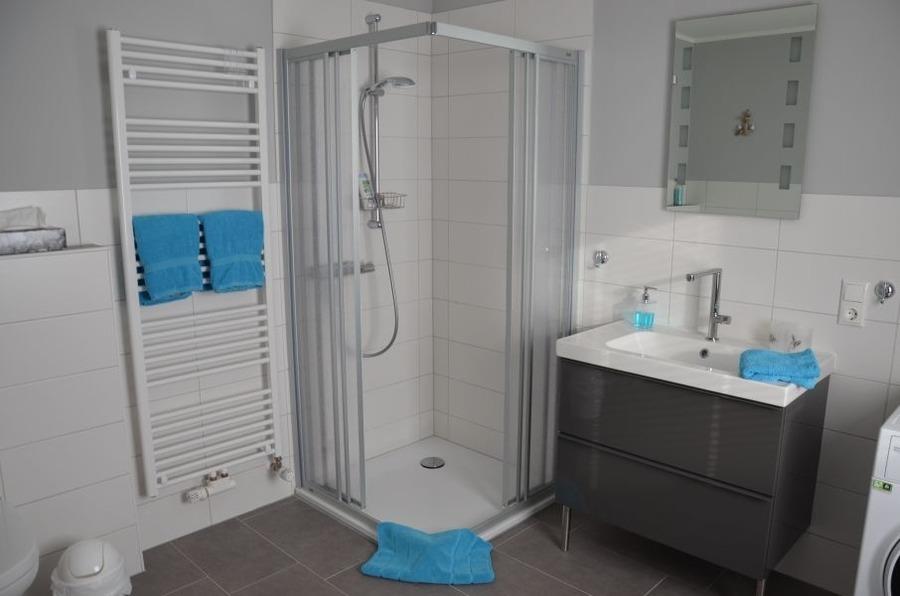 Bad: Fußbodenheizung, Handtuchheizkörper, Föhn, Duschgel, Waschmaschine mit Trocknerfunktion