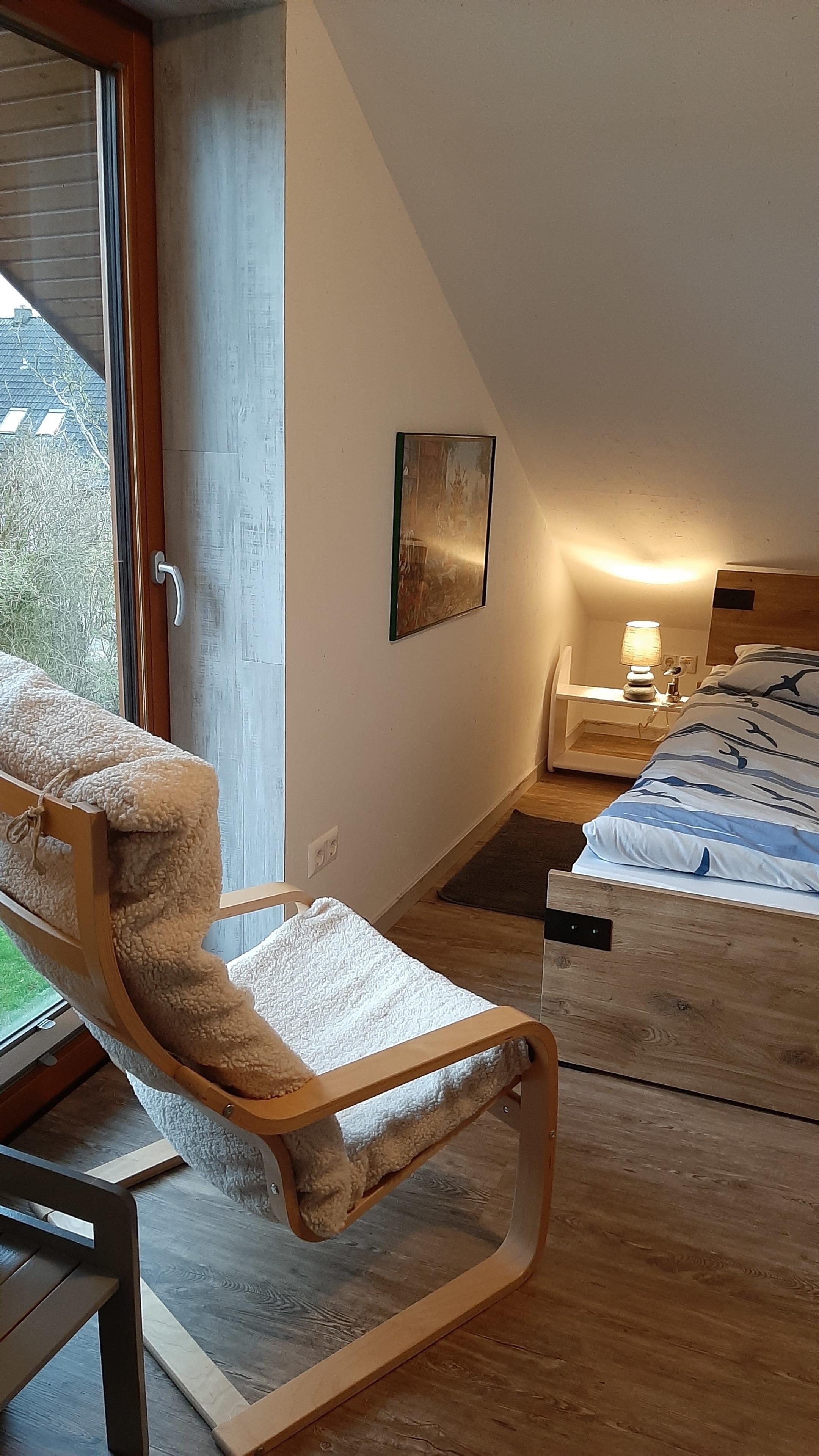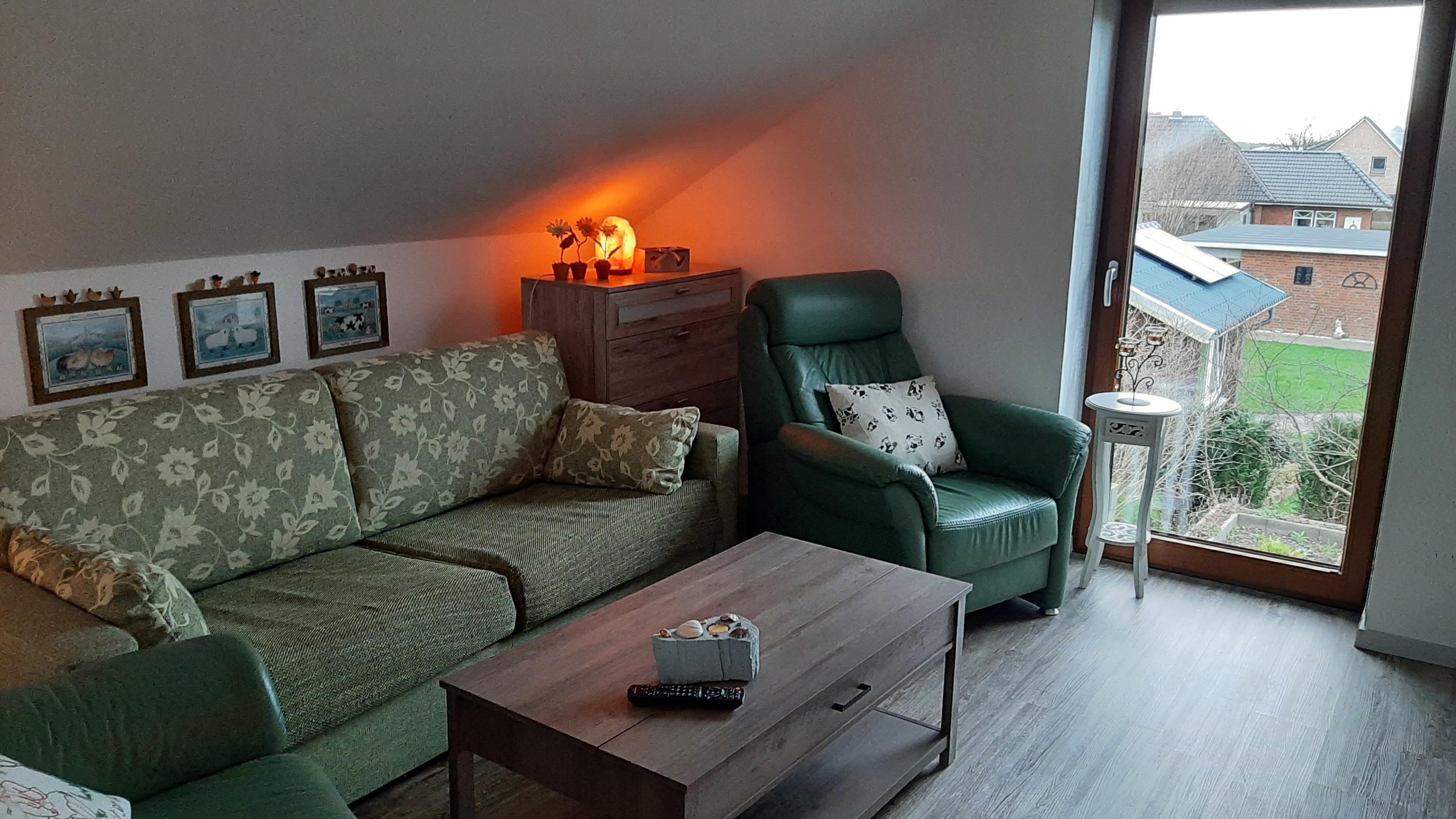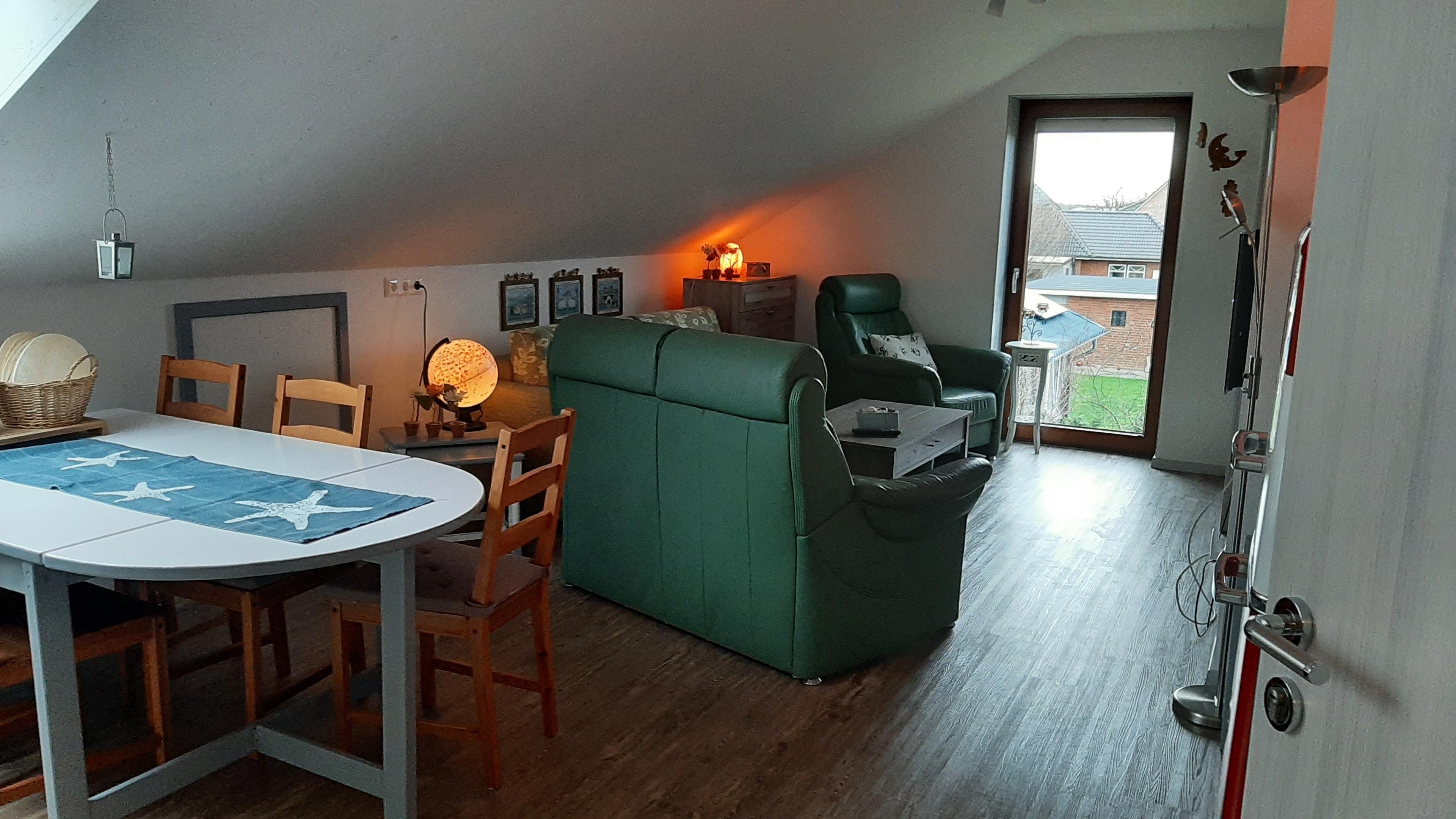 Gemütliche Ferienwohnung im Dachgeschoss mit Blick auf die nordfriesische Landschaft bei Ramstedt.