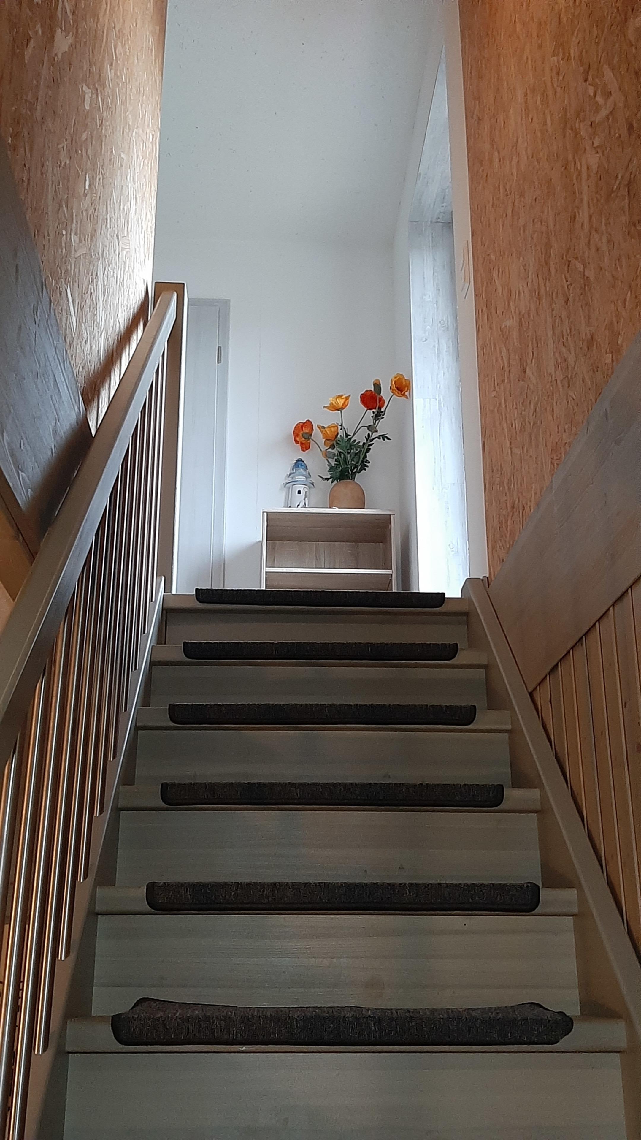 Ihre Wohnung befindet sich im Obergeschoss unseres Holzhauses in ruhiger Lage mit Blick in die nordfriesische Landschaft.