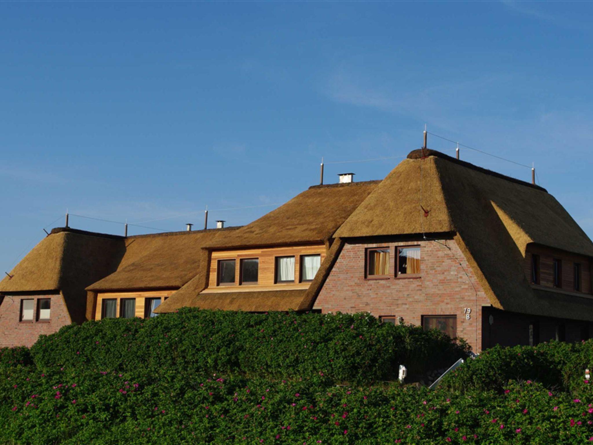Der Ort Rantum liegt an der schmalsten Stelle der Insel Sylt. Die brandene Nordsee im Westen und das ruhige Wattenmeer im Osten umgeben das Dorf mit seinen vielen reetgedeckten Häusern, die sich in die Dünenlandschaft anschmiegen. Das Süderhus liegt am Ende einer Sackgasse und hat von den Schlafzimmern einen wunderschönen Blick auf das Wattenmeer und vom Wohnzimmer auf die westliche Dünenlandschaft. Zum Strand und zum Watt sind es nur wenige Gehminuten.