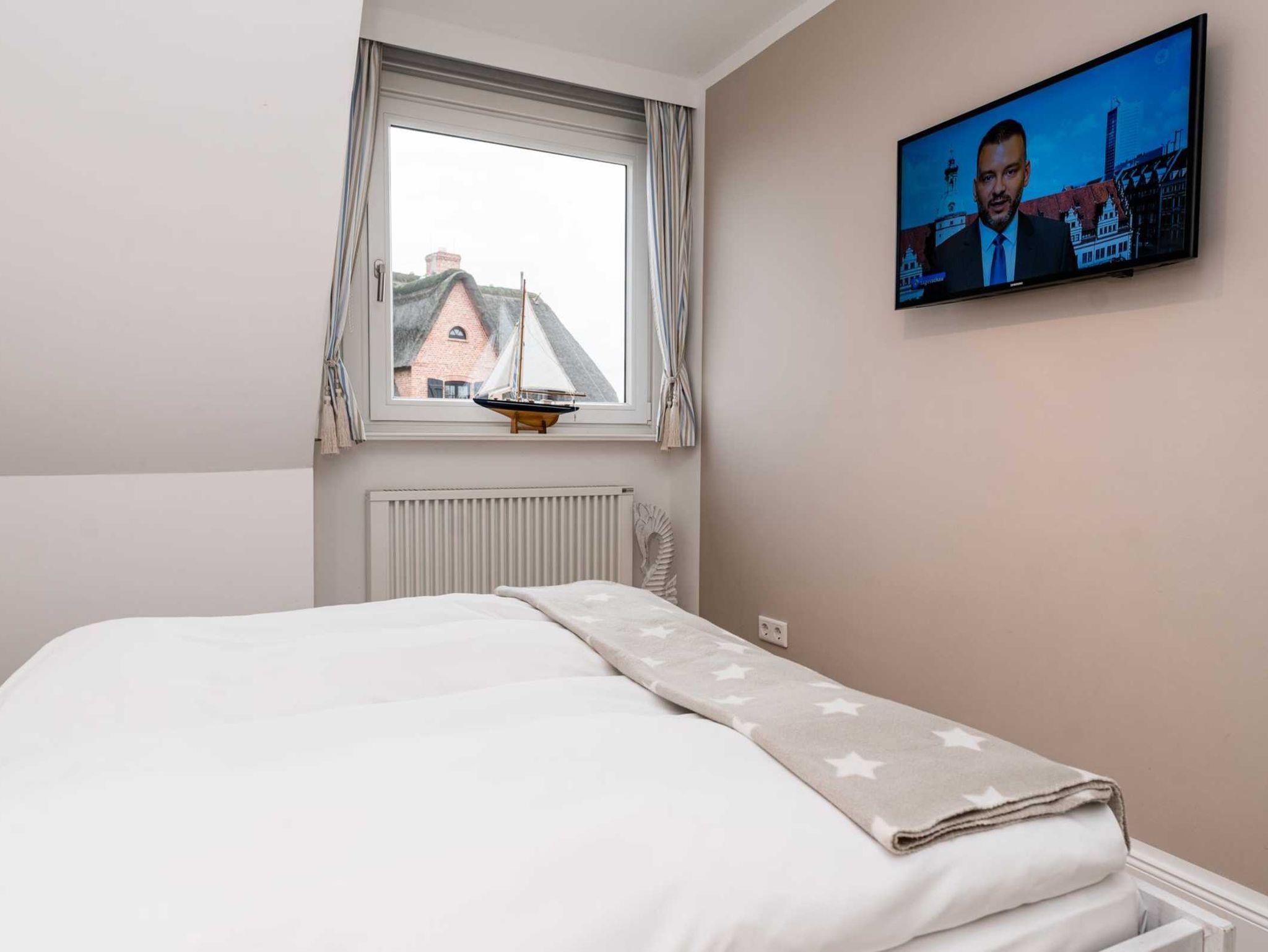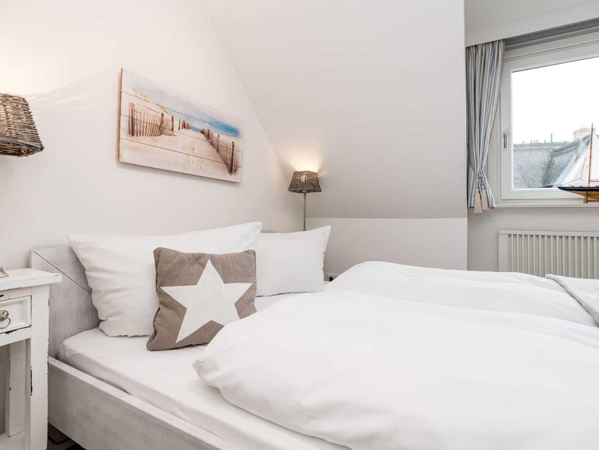Das geräumige und helle Appartement liegt in Rantum auf Sylt im ersten Obergeschoss des Hauses und besticht durch die gemütliche Ausstattung und die herrliche Lage mit schönem Blick. Hier begrüßt Sie morgens die Sonne. Auf einer Ebene finden Sie ein geräumiges Wohnzimmer, eine voll ausgestattete separate Küche mit Nespressomaschine, zwei gemütliche Schlafzimmer sowie ein Wannenbad. Das größere Schlafzimmer hat ein sehr bequemes Doppelbett (180x200). In dem kleineren Schlafraum befindet sich ein weiteres gemütliches Doppelbett (140x200). Selbstverständlich stehen Ihnen 3 SAT Flat-Screen TV's, kostenloser WLAN Zugang, ein Telefonanschluss in das deutsche Festnetz und ein PKW-Stellplatz zur Verfügung.