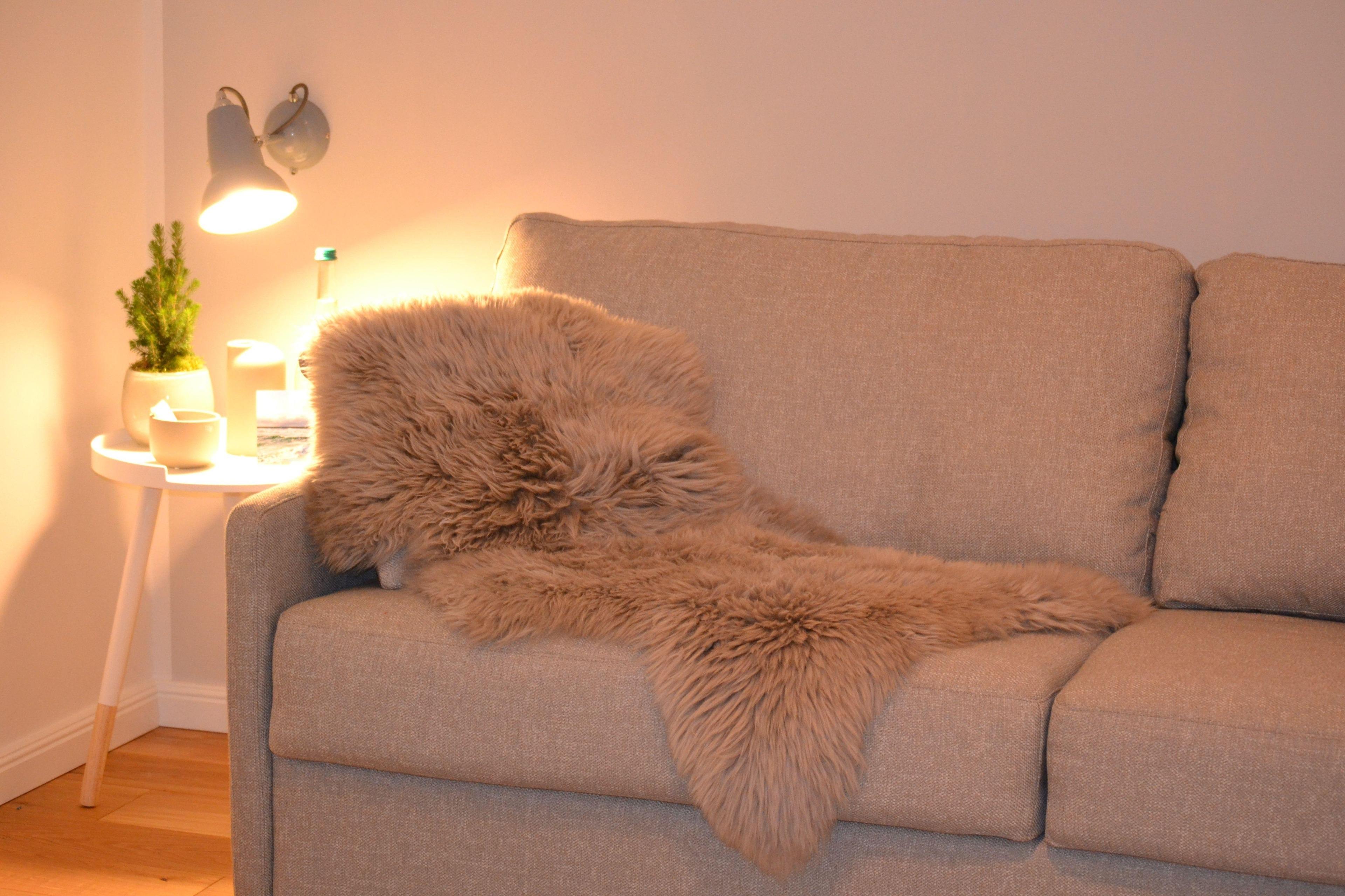 Offener hochwertig, möblierter Wohnbereich mit Designer Schlafsofa von SITS mit einer Matraze Nova Foam Größe: 1,60 x 2,00 m, großer Kleiderschrank: 2,70 x 2,40m (LxH), ausklappbarer Esstisch, neue Fenster- und Türenbeschläge von SICHERHAUS SYLT und Naturholzboden.