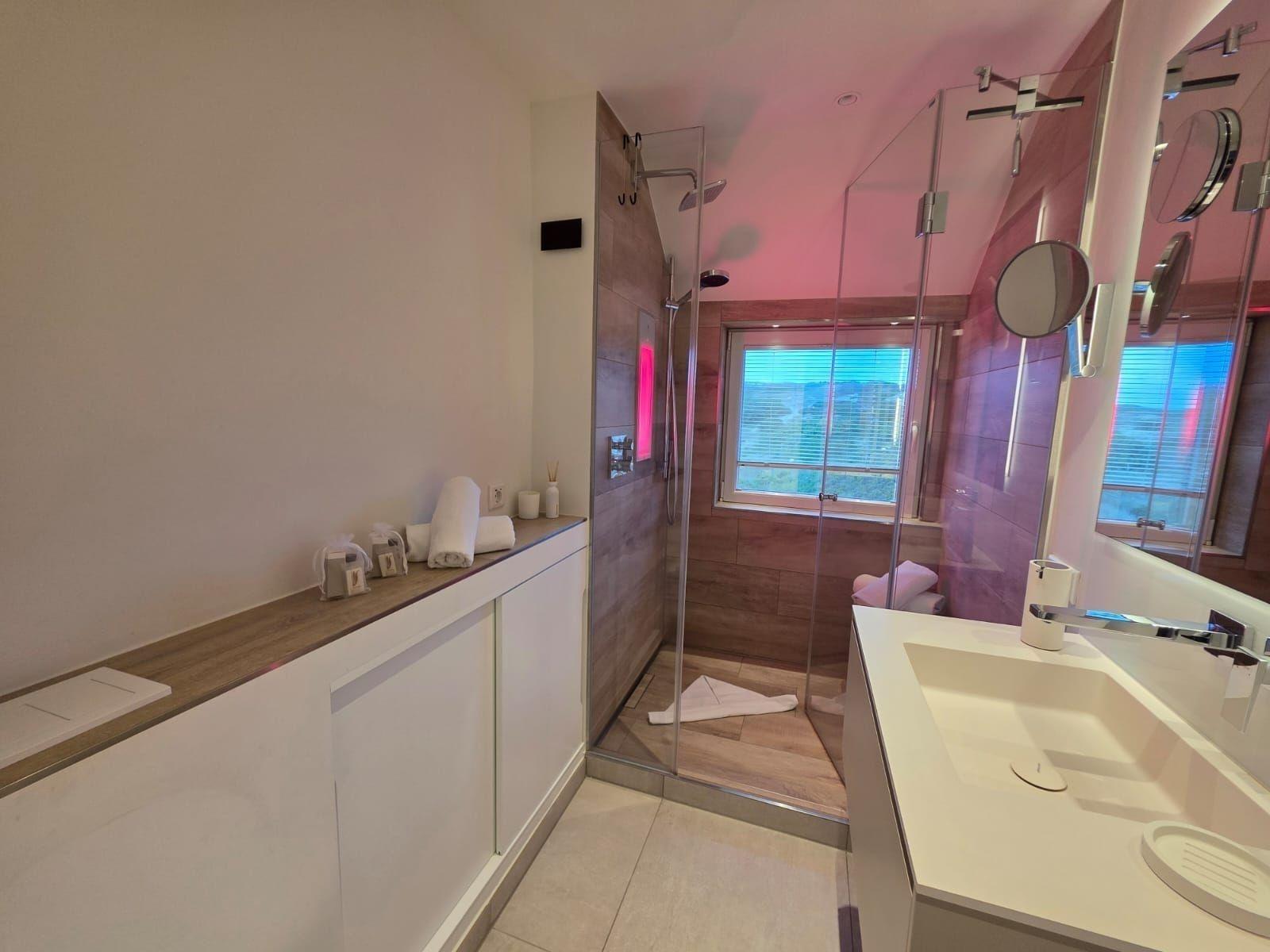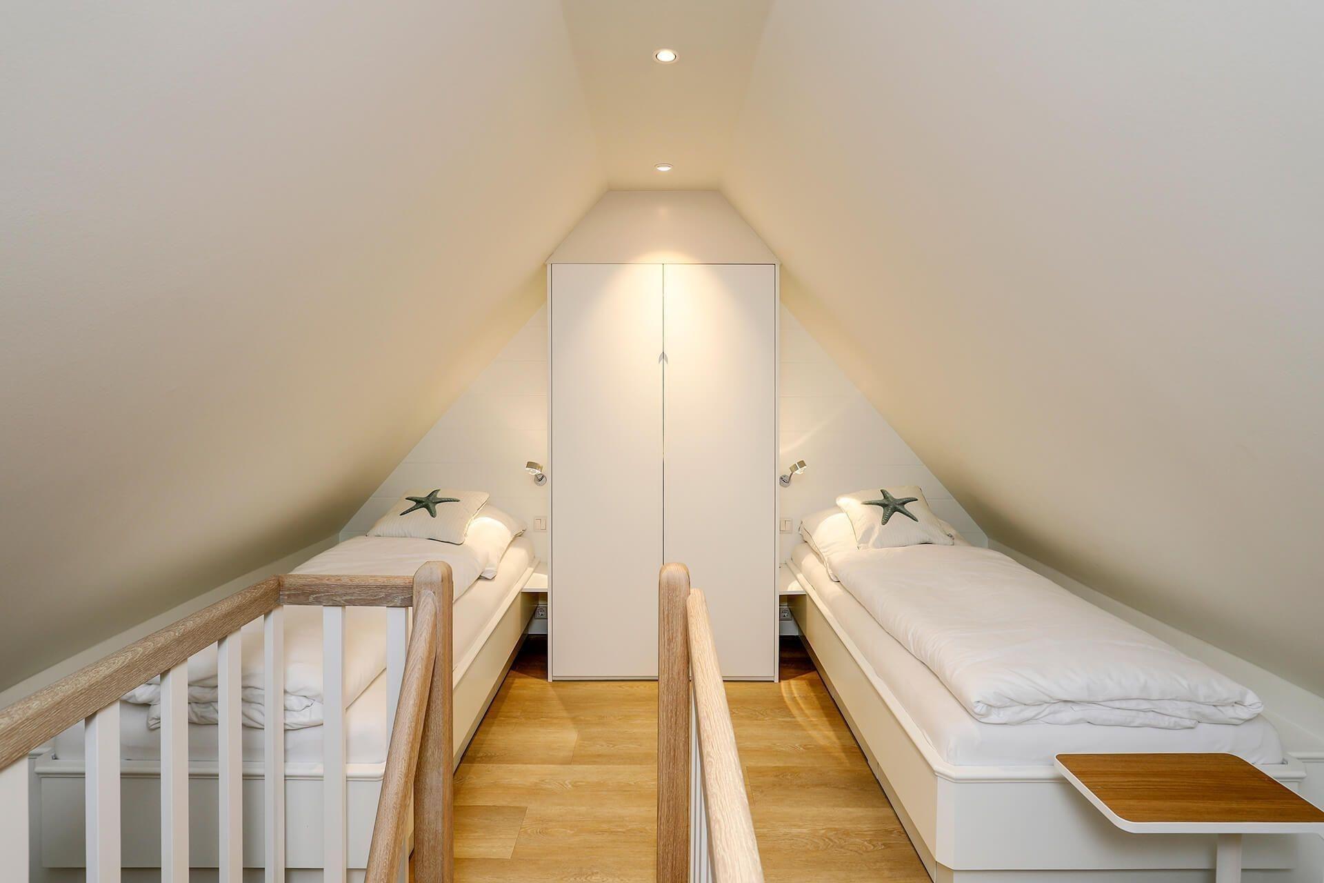 Die Ferienwohnung bietet ein modernes und einladendes Ambiente für erholsame Tage. Sie verfügt über zwei Schlafzimmer, eines mit einem komfortablen Doppelbett und das andere mit zwei Einzelbetten. Die offene Küche ist mit hochwertigen Geräten wie einem Geschirrspüler, Elektro-/Gasherd, Backofen und Kühlschrank ausgestattet, um das Kochen zu einem Vergnügen zu machen. Für die kleinen Gäste steht ein Kinderhochstuhl bereit. Das Badezimmer ist mit einer bodengleichen Dusche und einem Fenster ausgestattet, außerdem sorgt ein Haartrockner für zusätzlichen Komfort.