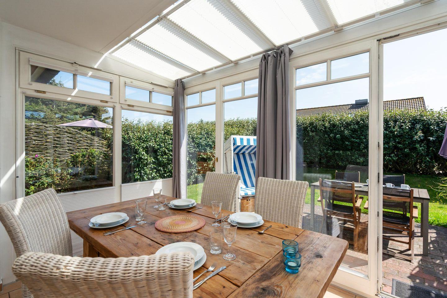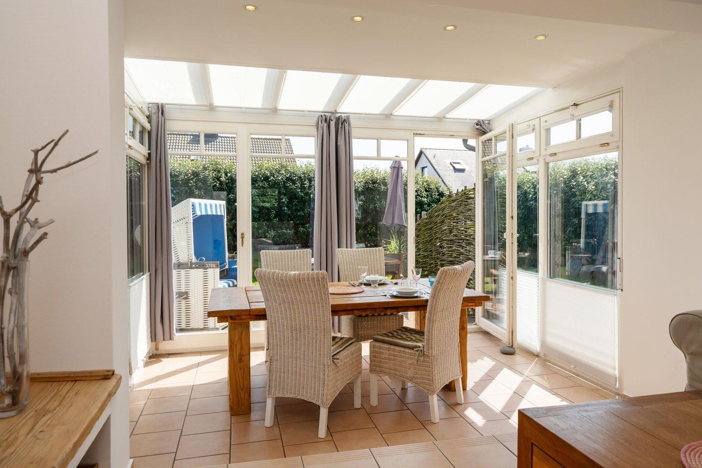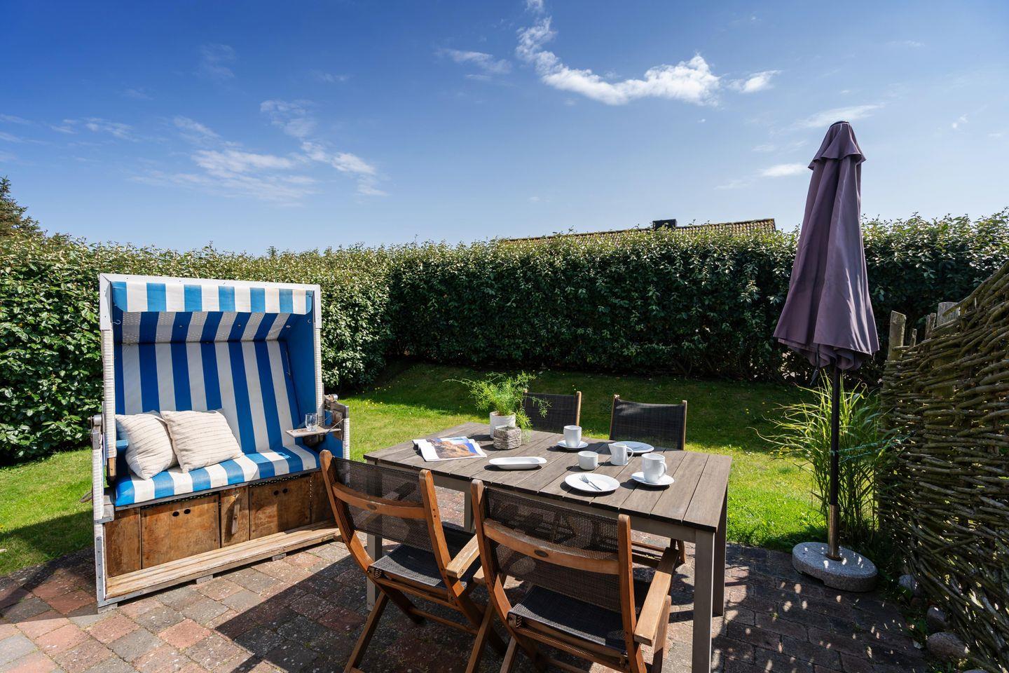 Modern renoviertes ca. 85 m² großes Ferienhaus in ruhiger, zentraler Strandlage für 3 bis 4 Personen in Rantum mit schönem Garten und zugehörigem PKW-Stellplatz. Inklusive WLAN und Strandkorb (in der Saison).