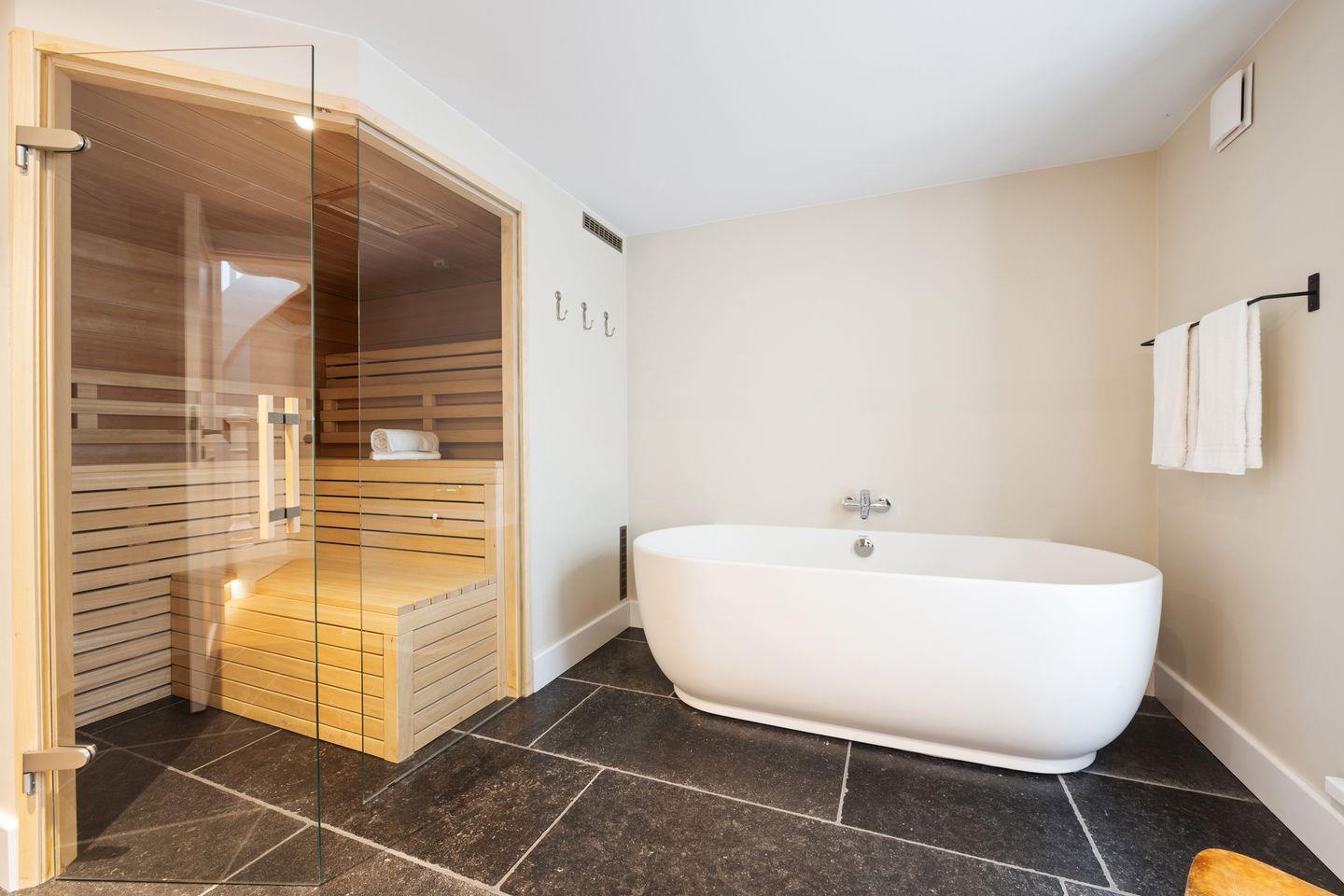 Ein Highlight des Hauses ist der Wellnessbereich mit eigener Sauna und Ruhebereich, perfekt zum Entspannen nach einem Tag voller Erlebnisse. Die zwei modernen Badezimmer bieten höchsten Komfort: Das Wellnessbad ist mit Badewanne, Dusche, Fön und Sauna ausgestattet, während das zweite Badezimmer eine Dusche, Tageslicht und Fön bietet. Ein Gäste-WC sorgt für zusätzlichen Komfort.