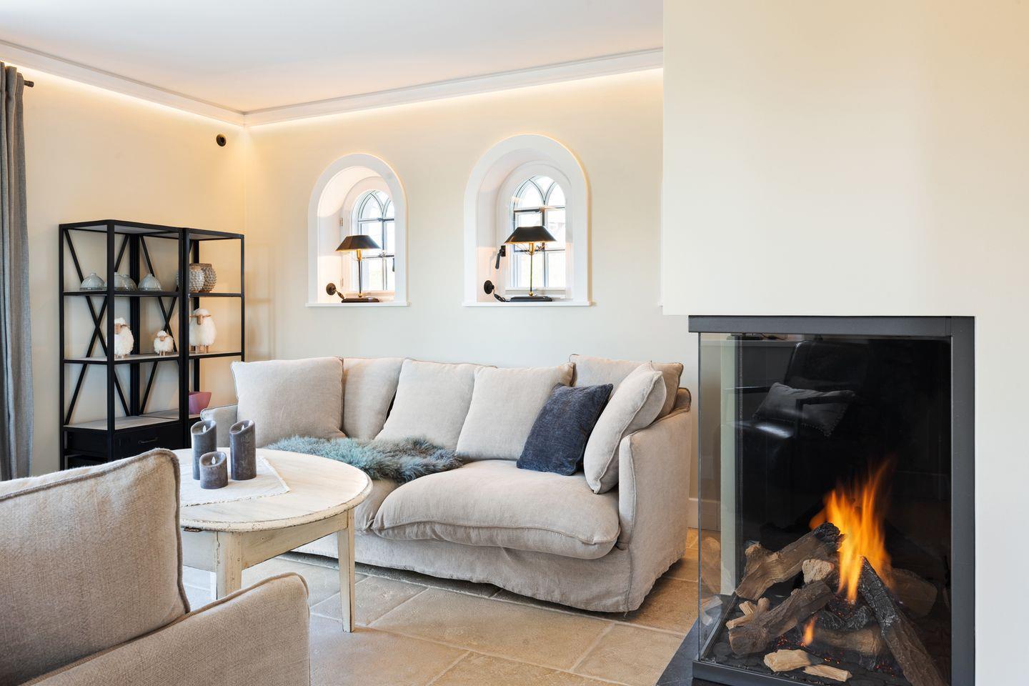 Das großzügige Wohnzimmer lädt mit einem stilvollen Gaskamin, einem gemütlichen Sofa und direktem Zugang zur sonnigen Südterrasse zum Entspannen ein. Der Essbereich, ausgestattet mit einem großen Tisch, 5 Stühlen und einer komfortablen Sitzbank, bietet reichlich Platz für gesellige Abende und gemeinsame Mahlzeiten. Die halboffene Tischlerküche ist modern und funktional, ausgestattet mit Herd, Filterkaffeemaschine und Nespresso-Maschine und ermöglicht entspanntes Kochen und Genießen.