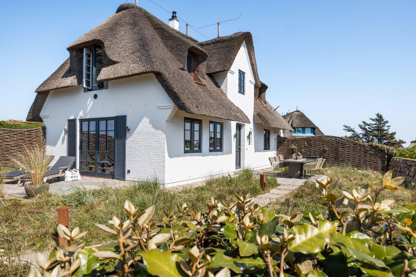 Luxuriöses Reetdachferienhaus in Rantum mit Sauna, Kamin und Garten, nur 150 m vom Strand entfernt, ideal für erholsame Urlaubstage.
