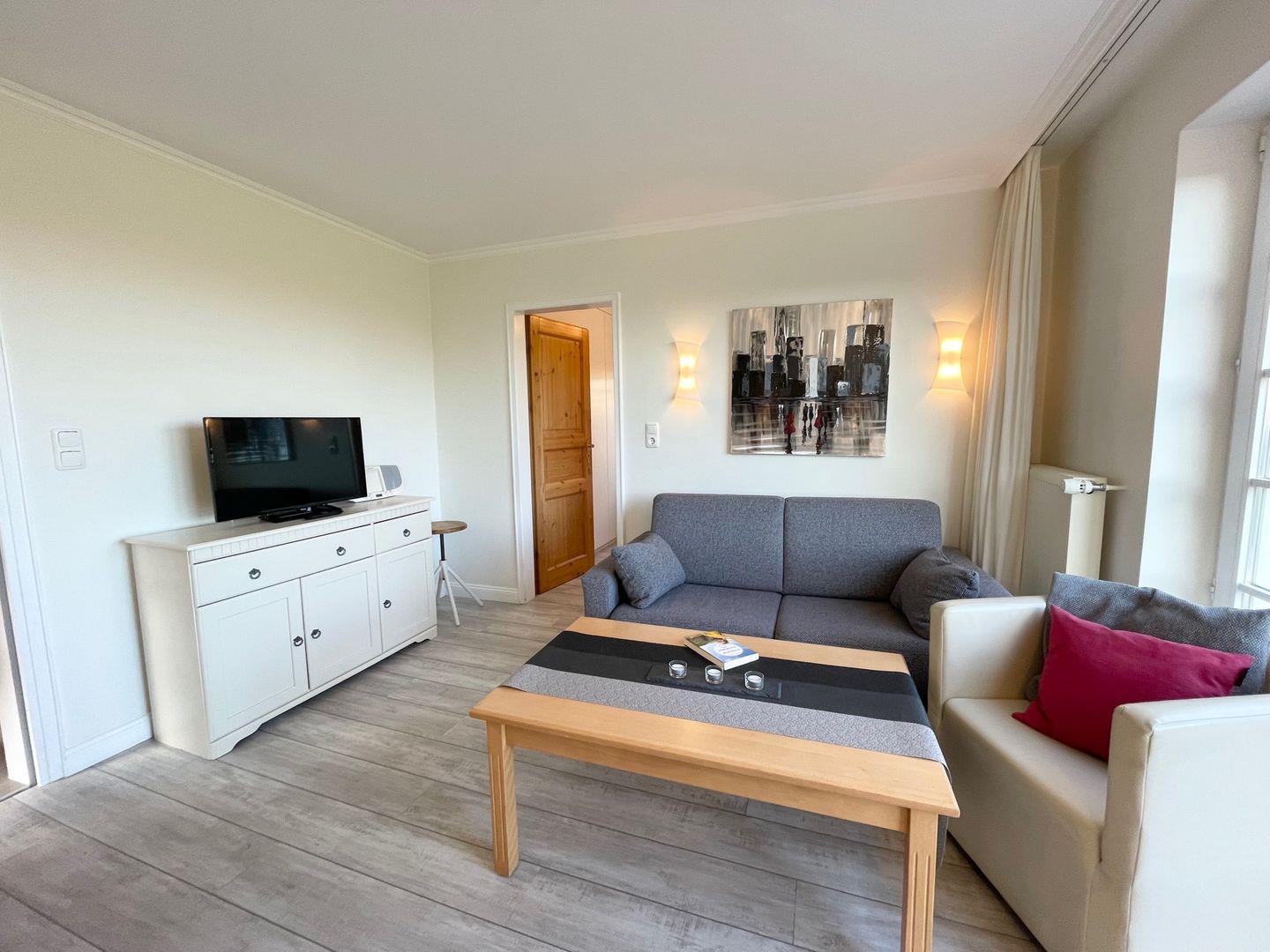 Das Appartement befindet sich im Erdgeschoß. Vom Wohnzimmer haben Sie einen herrlichen Blick aufs Wattenmeer. Die großzügige Terrasse hat eine Süd- Ost- und Westausrichtung. Nur 7 Gehminuten liegt der Strand entfernt. Gute Restaurants und Einkaufsmöglichkeiten sind in unmittelbarer Nähe.