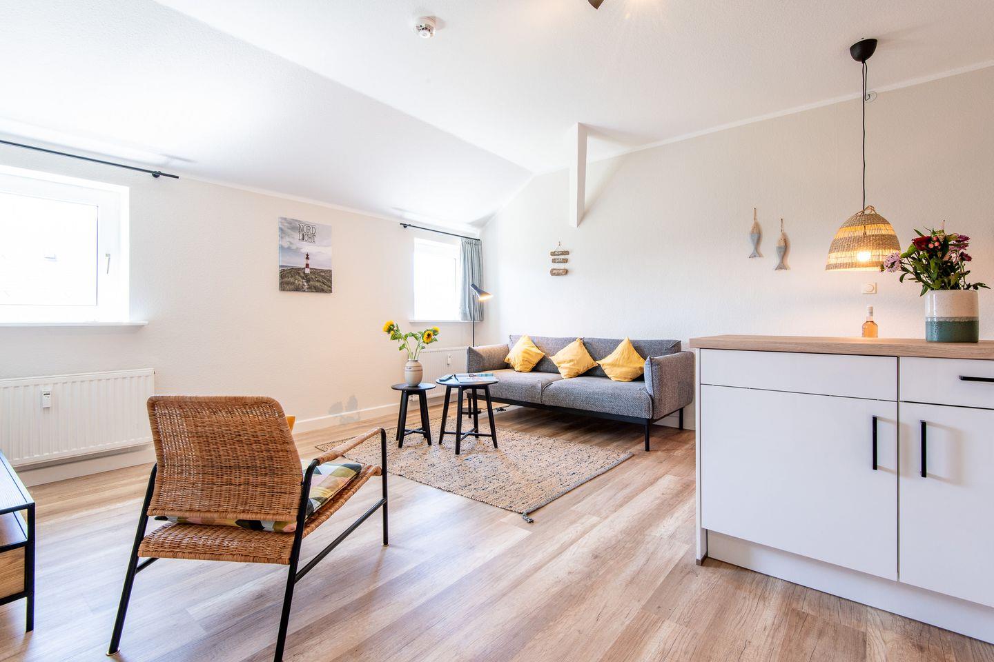 Modern renoviertes 2-Zimmer-Apartment in Rantum mit Aufzug, Balkon und voll ausgestatteter Küche, nur 650 m vom Strand entfernt.
