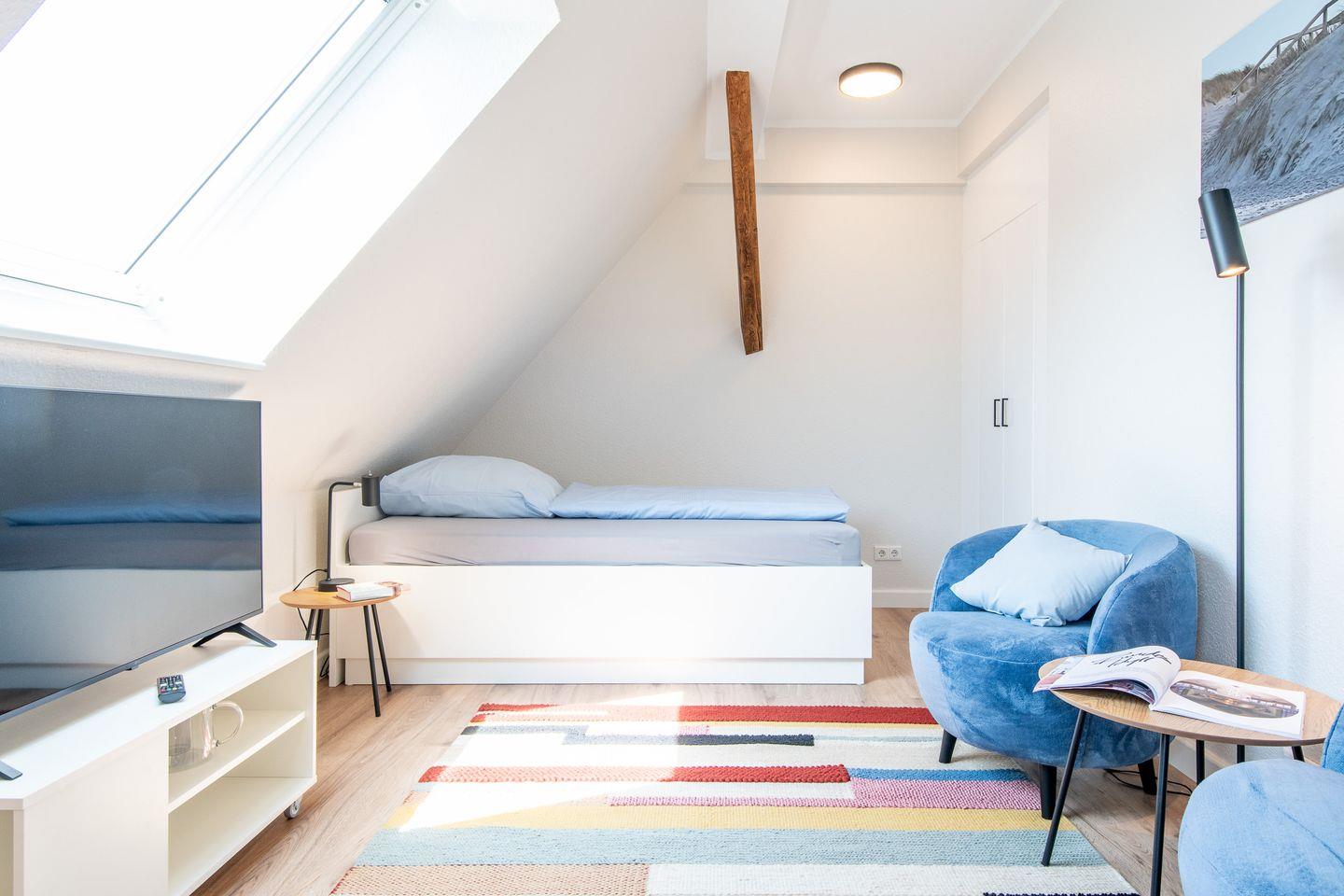 Modernes Studio im Steger-Hüs Rantum mit Küchenzeile und komfortabler Ausstattung für Einzelreisende.