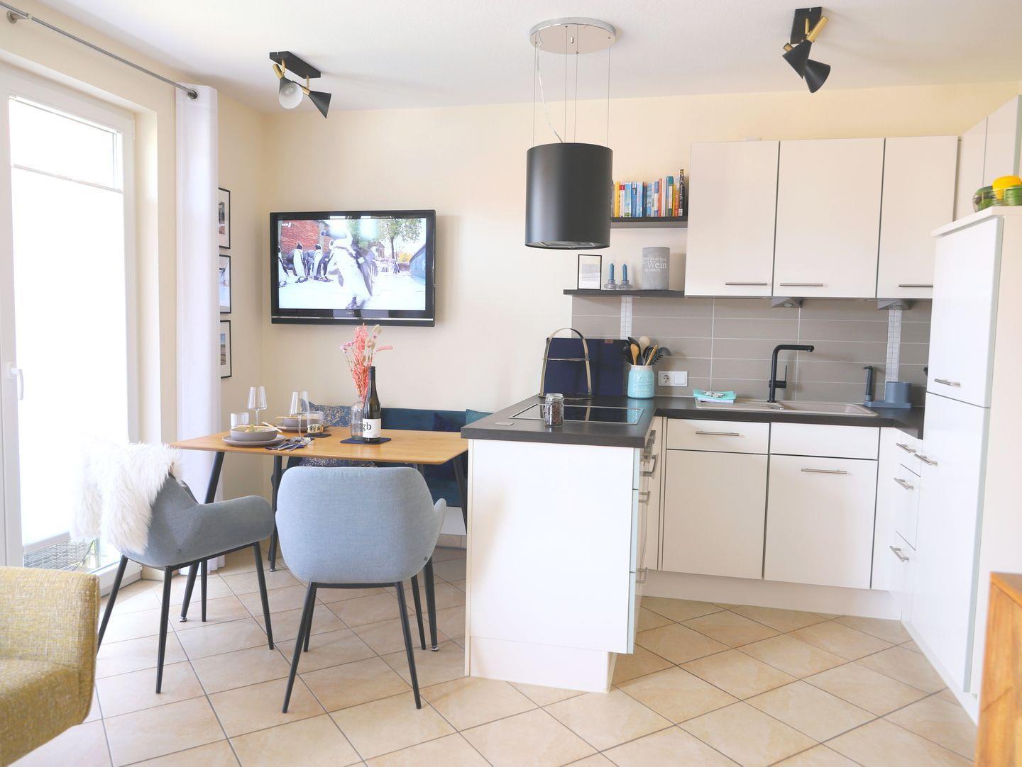 Nur wenige Meter vom Weststrand entfernt liegt diese helle 2-Zimmer-Ferienwohnung in der 1. Etage mit Westbalkon. Modern eingerichtet mit offenem Wohn-/Essbereich, einer praktischen Küchenzeile und einem komfortablen Boxspringbett im Schlafzimmer. Parkplatz direkt am Haus vorhanden, WLAN inklusive.