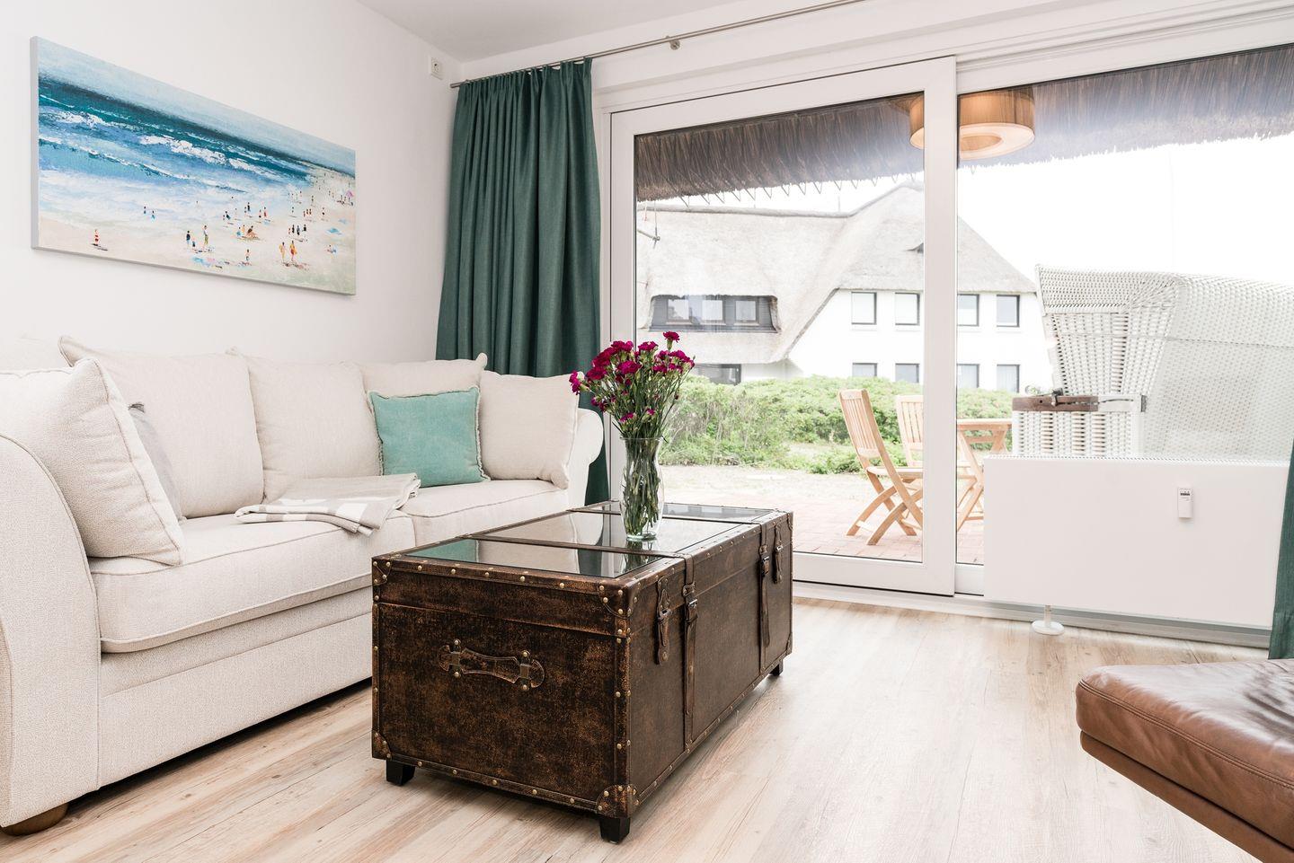 Moderne Ferienwohnung mit traumhaftem Blick auf das Wattenmeer in Rantum, Sylt, ideal für entspannte Urlaubstage.