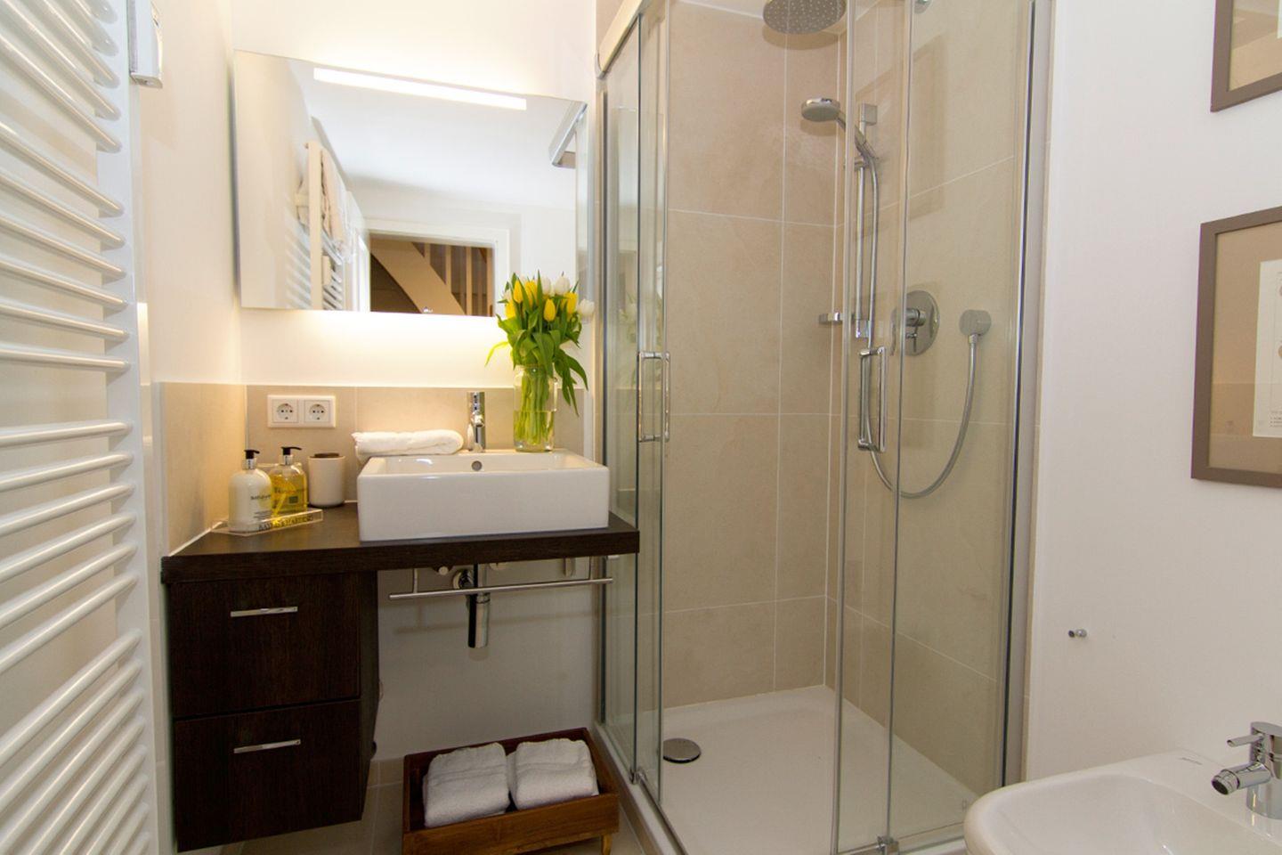 Modernes Badezimmer mit Dusche sowie zusätzlich ein Gäste-WC
