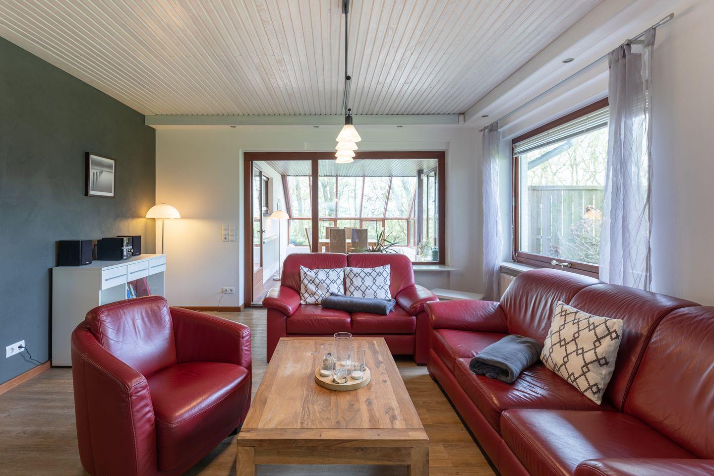Der große Wohnraum lädt mit seiner Ledersitzecke zu gemütlichen Stunden bei einem spannenden Buch ein. Für Ihre elektronische Unterhaltung sorgt der Flachbild-TV (SAT), die Stereoanlage und der DVD-Player. Bücher und eine Spielesammlung werden Ihnen ebenfalls geboten. Der helle Wintergarten und auch der großzügige Essbereich bieten Ihnen viel Freiraum.