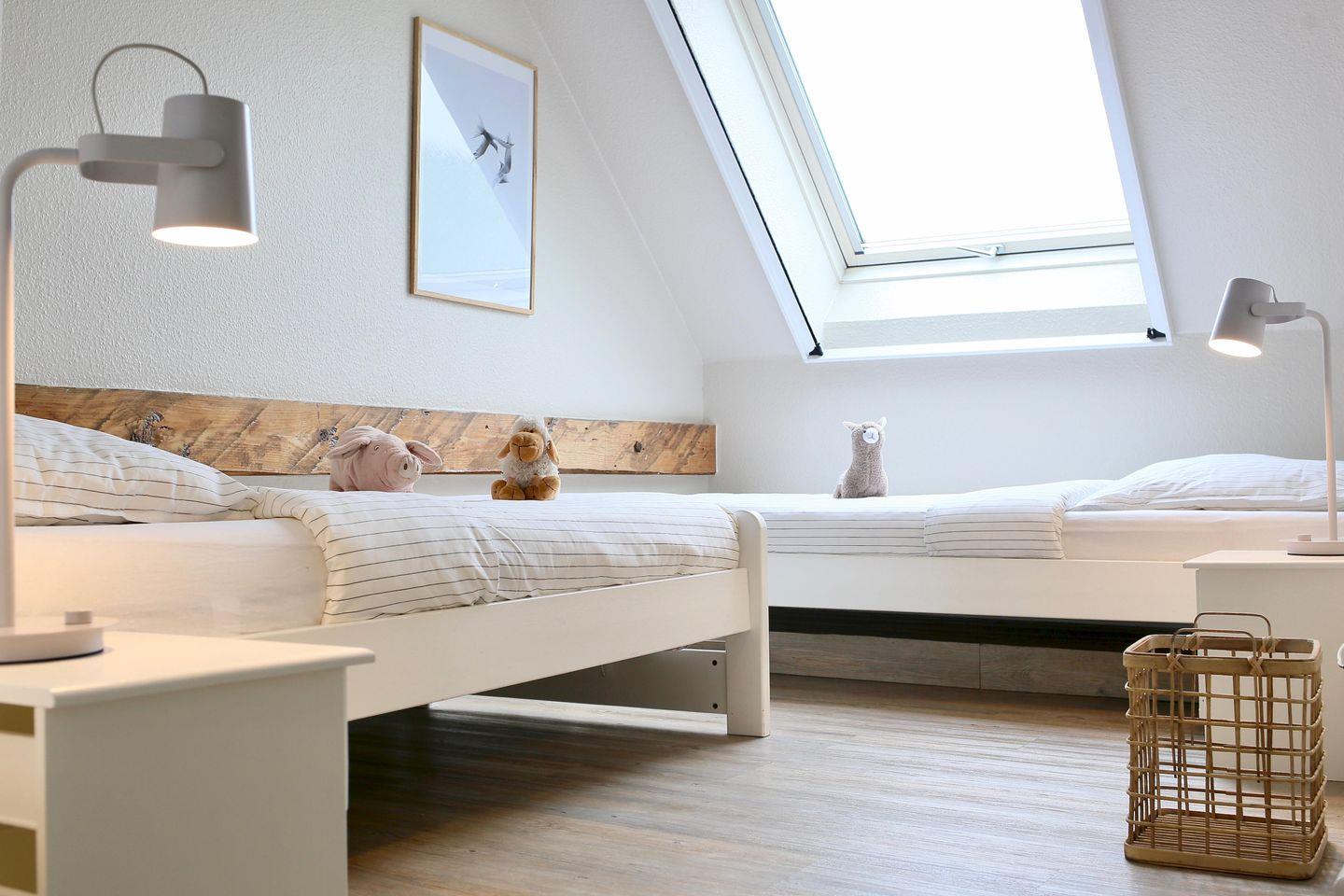 ° 2 Kinderschlafzimmer mit 2 einzel stehenden Betten befinden sich im 2 . Stock