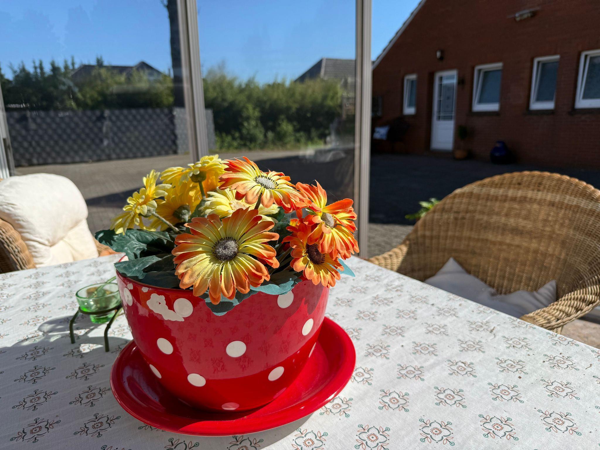 Fühlen Sie sich wohl in unserer komplett ausgestatteten Ferienwohnung im Erdgeschoss. Die Aufteilung der Ferienwohnung besteht aus einem gemütlichen Wohnzimmer, einer Einbauküche mit einem Ostfriesensofa, einem Doppelzimmer mit viel Stauraum und einem Durchgangseinzelzimmer. Dazu gehört noch ein ebenerdiges Badezimmer mit einer Dusche ohne Einstieg und ein WC. Ein separater Parkplatz steht Ihnen direkt am Haus zur Verfügung. Eine kleine Terrasse, ein Grill wie auch ein Pavillon aus Glas zum Verweilen tragen zu einem entspannten Urlaub bei.