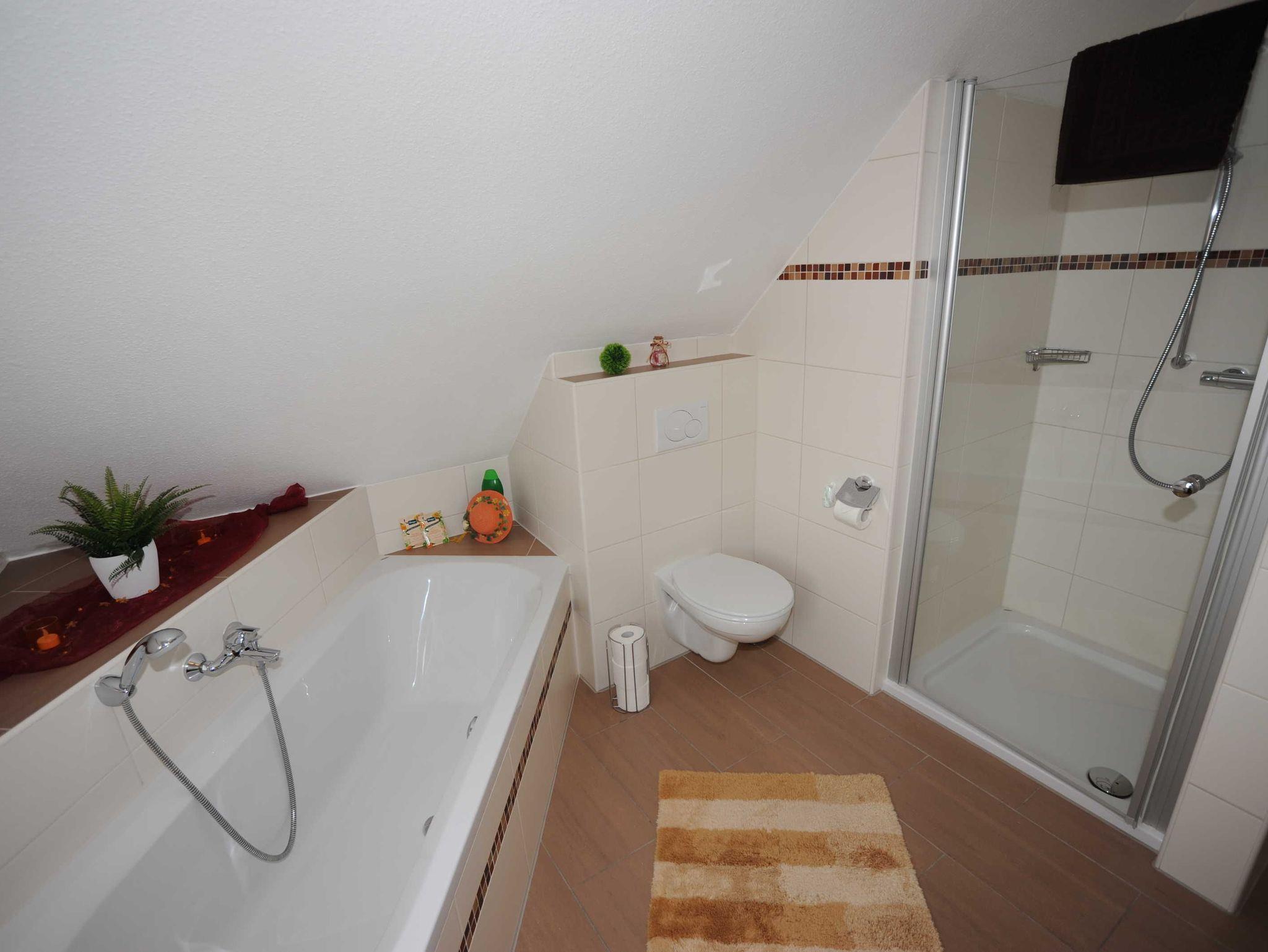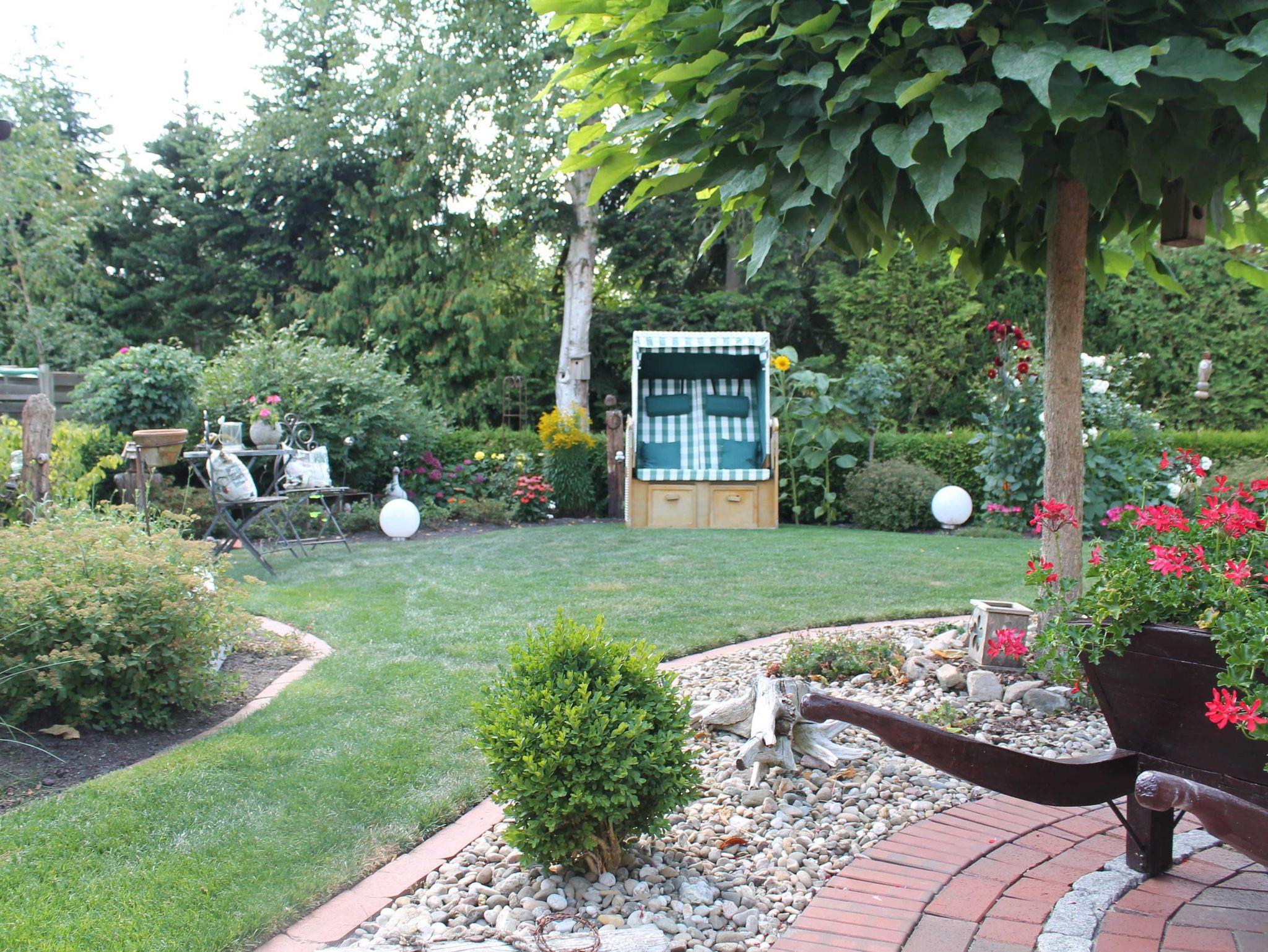 Im Schlafzimmer befindet sich ein großer Kleiderschrank, ein Doppelbett mit neuen Matratzen und extra breiten und langen Überbetten. Das Badezimmer ist mit einer ebenerdigen Dusche ausgestattet. Eine Eckbadewanne lädt z.B. zum Abschluss eines schönen Tages zum Entspannen ein. Unser Garten liegt im hinteren Haubereich und ist idyllisch aufgebaut. Zahlreiche Sitzgelegenheiten bieten Ihnen die Möglichkeit, über den Tag zu verweilen oder den Abend ausklingen zu lassen. Aber auch ein Schläfchen im Strandkorb oder Liegestuhl ist möglich.