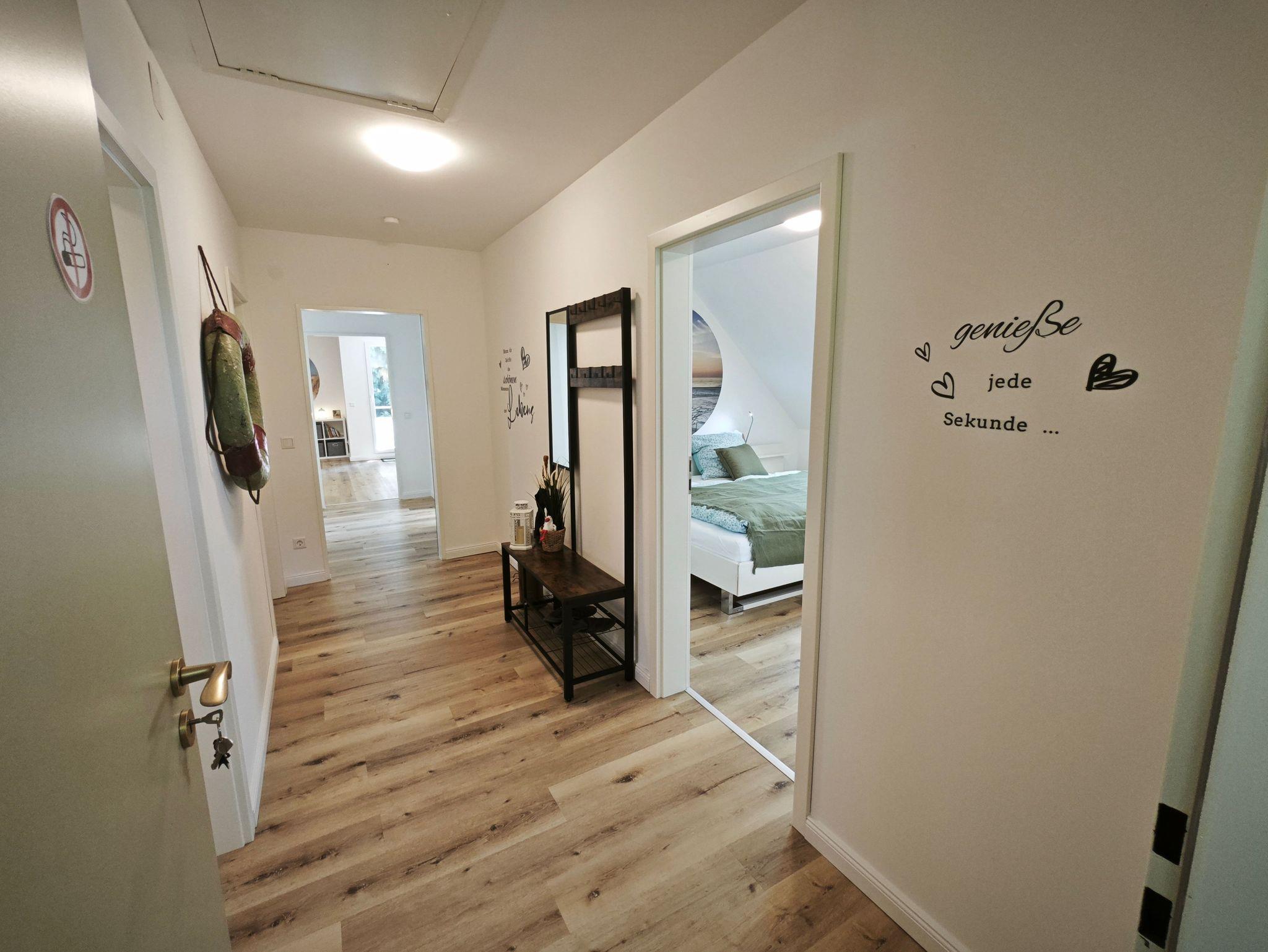 Moderne Ferienwohnung in ruhiger Lage von Rhauderfehn mit Balkon, kostenfreier Waschmaschine und abschließbarem Fahrradraum.