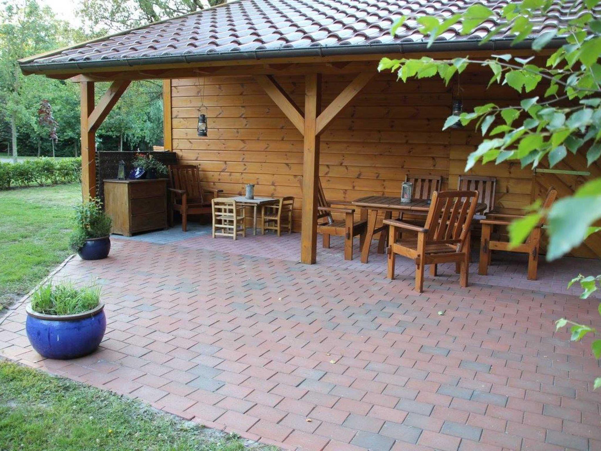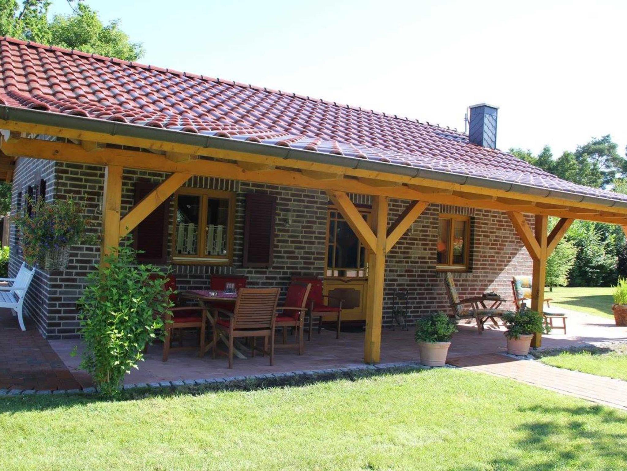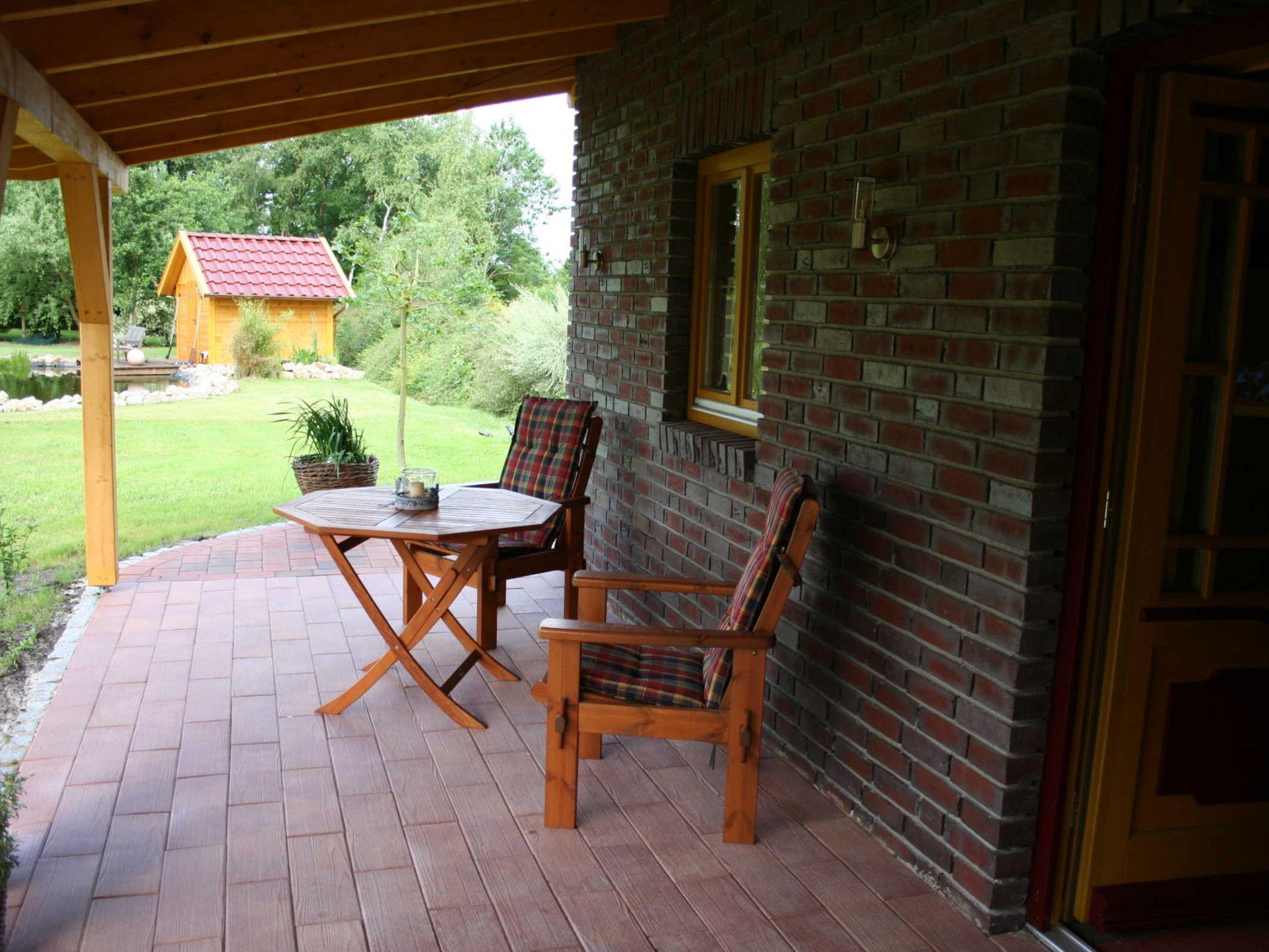 Das rollstuhlgerechte Ferienhaus Henkel in Rhauderfehn bietet eine gemütliche Wohnküche, Kamin und idyllische Veranda.