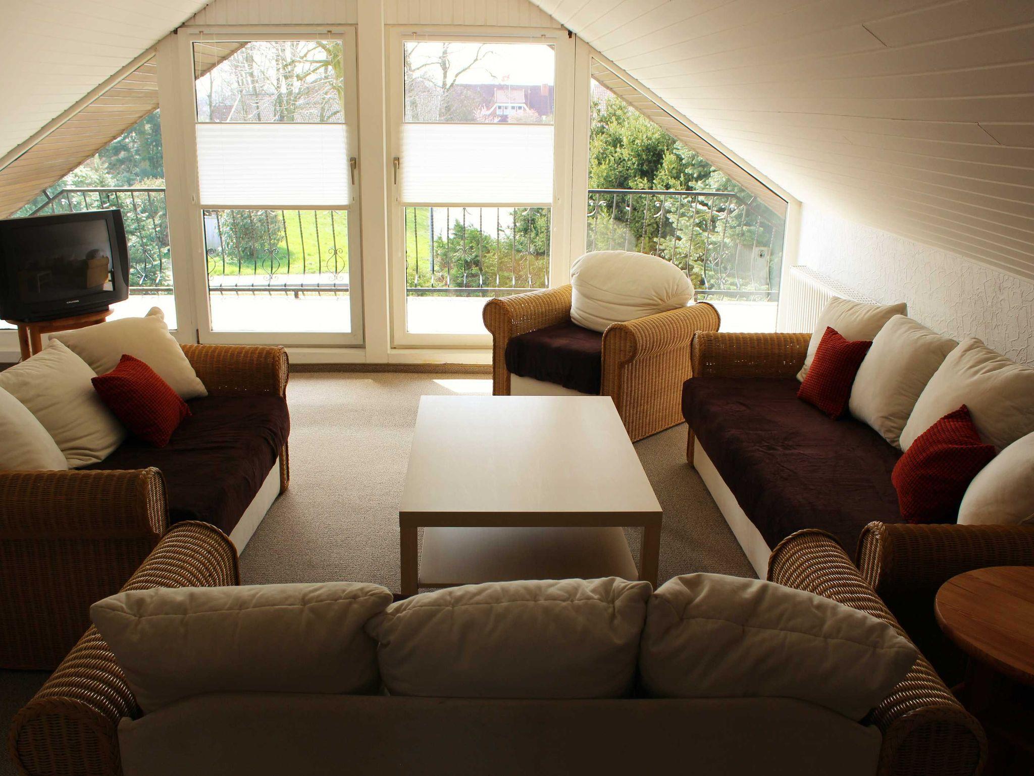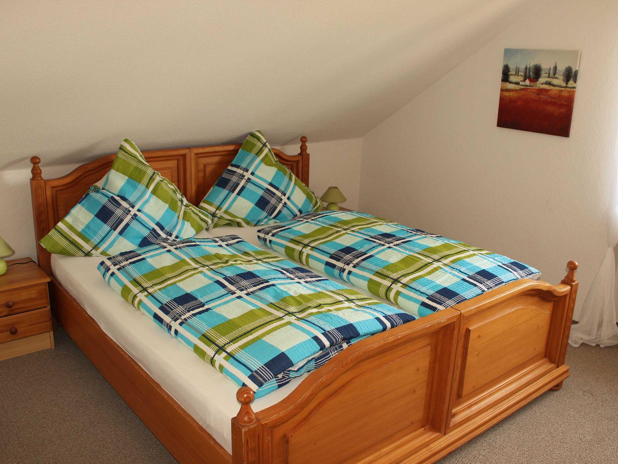Diese gemütliche Ferienwohnung ist sehr geräumig und bietet Platz für bis zu 5 Personen! Sie finden ein Schlafzimmer mit Doppelbett, ein weiteres Schlafzimmer mit Einzelbett und ein Wohnzimmer mit einem Ausziehsofa für zwei Personen. Im großen, lichtdurchfluteten Wohnzimmer befindet sich eine Rattan-Sofa-Garnitur. Die Küche ist mit einer Eckbankgarnitur ausgestattet. Zudem finden Sie ein modernes Bad mit Dusche und separater Badewanne. Auf Wunsch können Sie 2-3 Fahrräder kostenlos ausleihen. Das Wohnzimmer ist mit einem Flachbild-Fernseher mit Sat-TV ausgestattet. WLAN/Internet (DSL) ist kostenlos nutzbar. Genießen Sie einen traumhaften Ausblick vom Südbalkon!