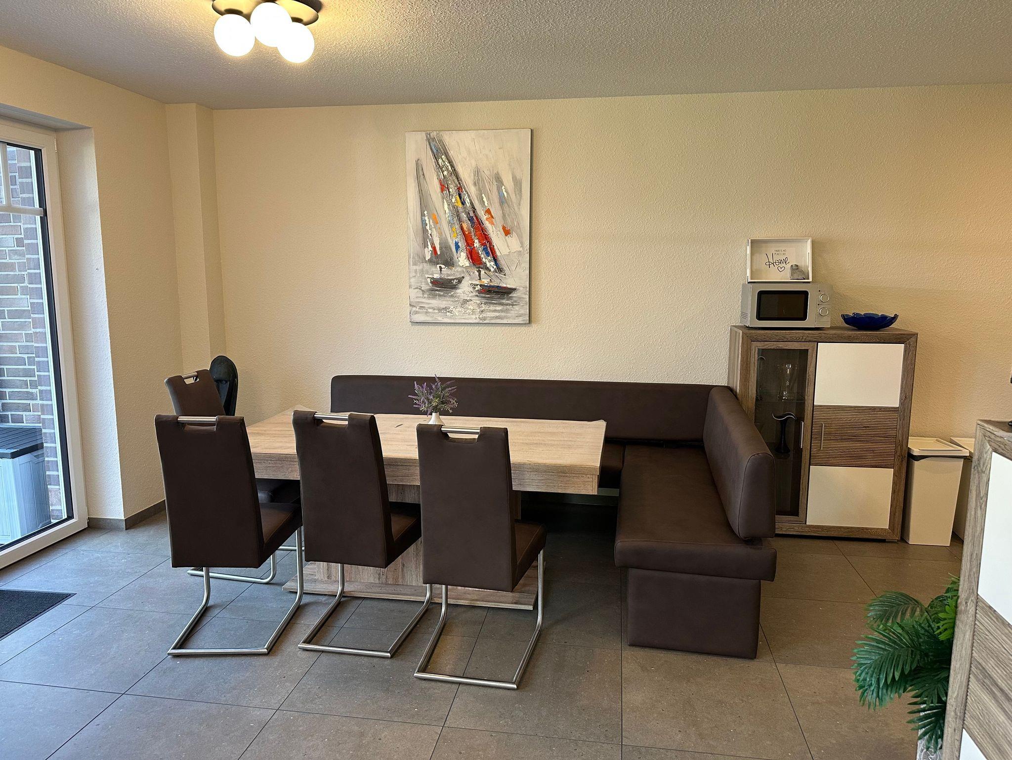 Geschmackvolle Ferienwohnung in ruhiger Lage in Rhauderfehn mit großer Küche und überdachter Terrasse.