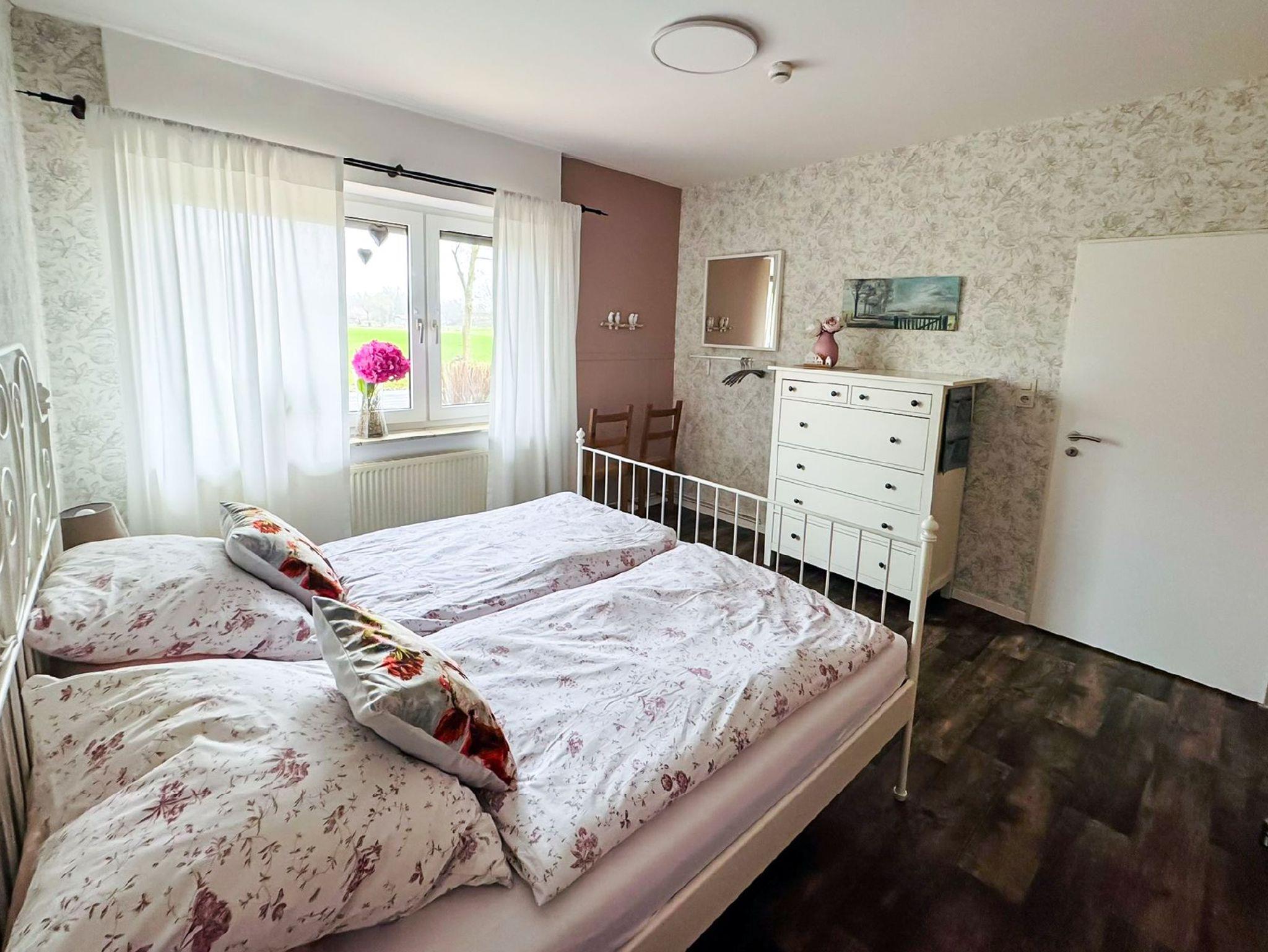 Herzlich willkommen in unserer gemütlich eingerichteten Ferienwohnung Wiesenzauber in Backemoor. Backemoor liegt zwischen Westrhauderfehn (7 km) und der Stadt Leer (8 km) mit ihrer historischen Altstadt und dem schönen Hafen. Ein Bummel durch die Fußgängerzone mit den vielen Cafés lohnt sich ganz besonders. Nach Papenburg, bekannt durch die Meyer Werft mit dem Bau der Kreuzfahrtschiffe, sind es 17 km. Die Seehafenstadt Emden liegt 30 km entfernt und bis zur Nordseeküste sind es etwa 50 km. Unser Dorf hat 500 Einwohner, ist idyllisch gelegen und mehrfach als Sieger im Wettbewerb Unser Dorf hat Zukunft ausgezeichnet worden. 2018 wurde Backemoor sogar Landesieger. Bei einem Spaziergang durchs Dorf entdeckt man eine Töpferei und die besonders sehenswerte fast 800 jährige Kirche mit der klangvollen Wenthinorgel. Außerdem befindet sich die alte Windmühle wieder im Aufbau. Das in unmittelbarer Nähe gelegene Naturschutzgebiet Holter Hammrich bietet Naturliebhabern eine Vielzahl von Wiesenvögeln zum Beobachten an. Hier lädt die typisch ostfriesische Landschaft zum entspannen, erholen, wandern, joggen und Fahrradfahren ohne Autoverkehr ein. In 3 km Entfernung befindet sich die Pünte, die älteste handbetriebene Fähre Nordeuropas. Die Fähre kann mit dem Auto, Motorrad, Fahrrad oder zu Fuß über die Jümme benutzt werden.