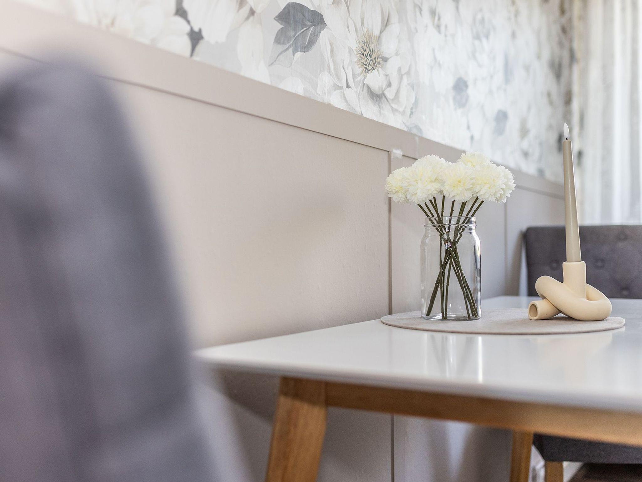 Fernseher ausgestattet. In der Küche mit Küchenzeile befindet sich ein Esstisch