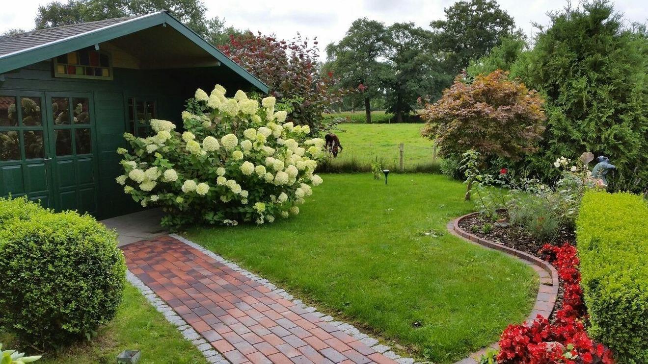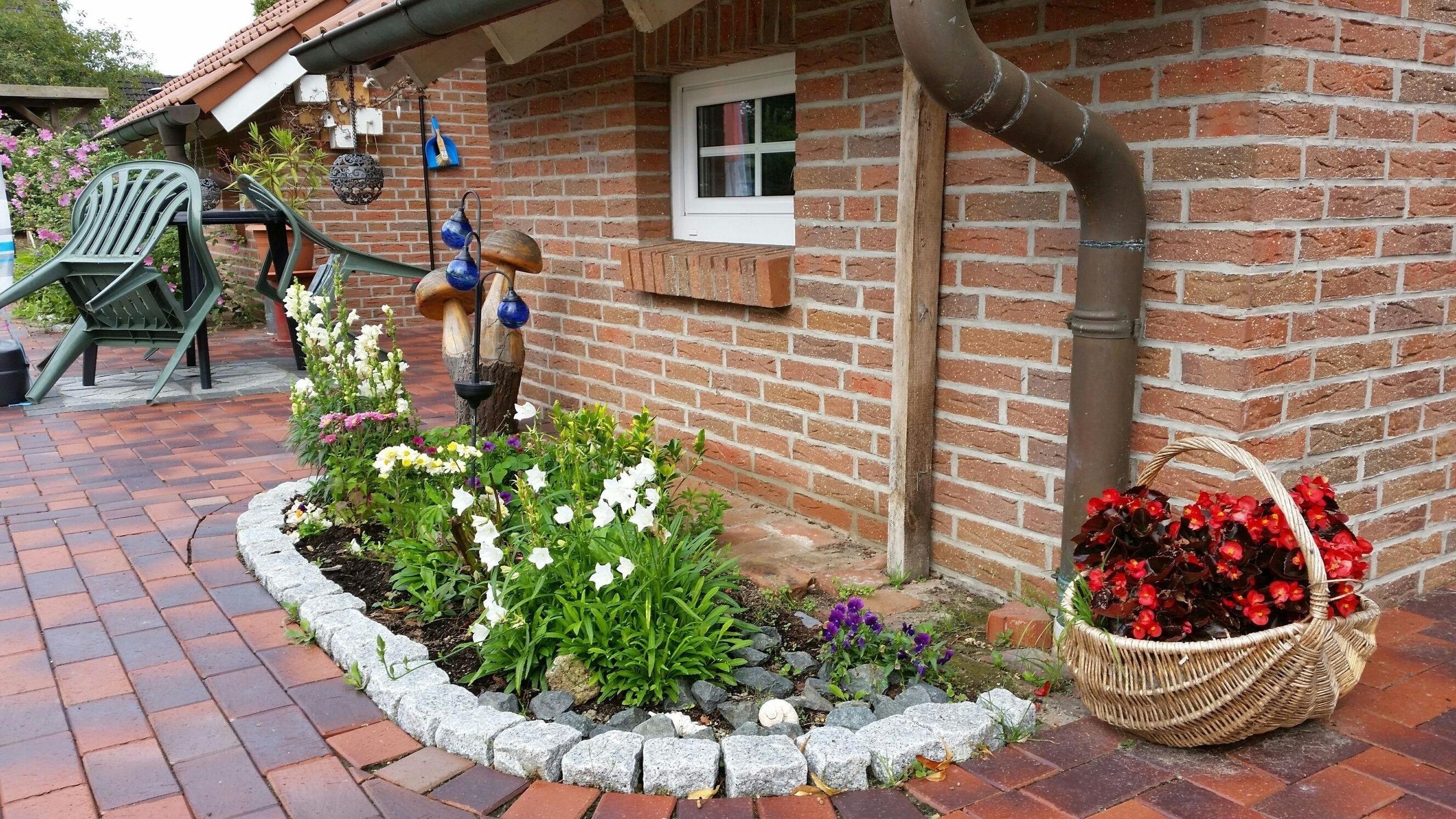 Im Garten befindet sich die Liegewiese und das Gartenhaus zum Unterstellen von Fahrrädern etc. Es sind genügend Liegen und Gartenstühle mit Auflagen vorhanden, ebenso ein Grill.