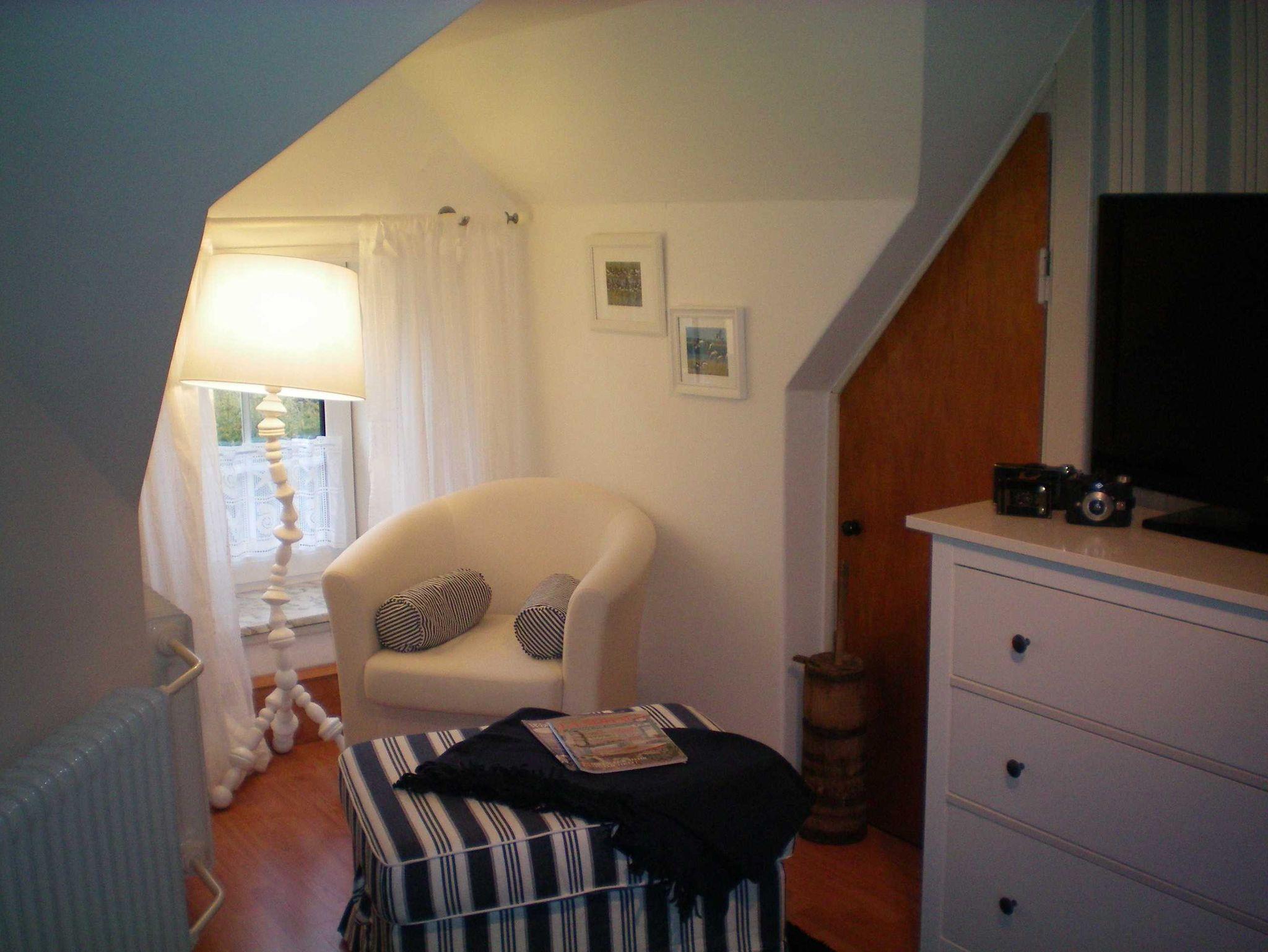 Die Räumlichkeiten im OG bietet Ihnen Schlafraum für weitere 4 Personen. Die Küche ist voll ausgestattet und bietet Ihnen u.a. auch einen Geschirrspüler, eine Mikrowelle, Kaffeemaschine, Toaster, Eierkocher und einen großen Kühlschrank mit Gefrierfach. Ebenso stehen Gewürze bereit. Das Ferienhaus verfügt über einen großen nicht einsehbaren Garten mit ausreichend Liegen und Strandkorb sowie einer Terrasse.