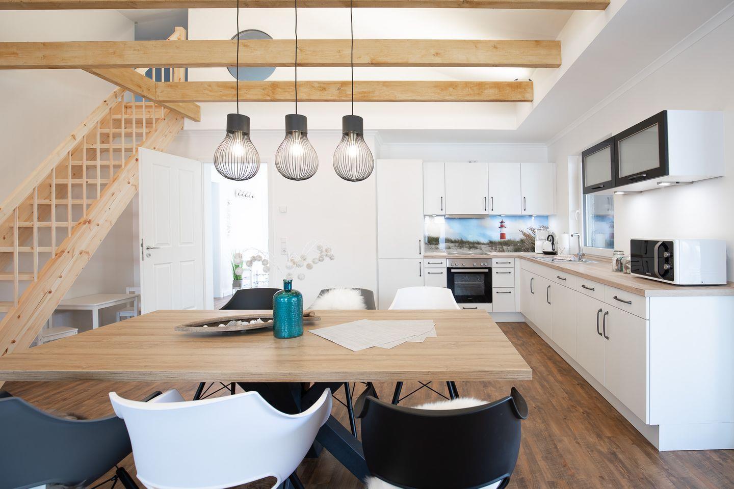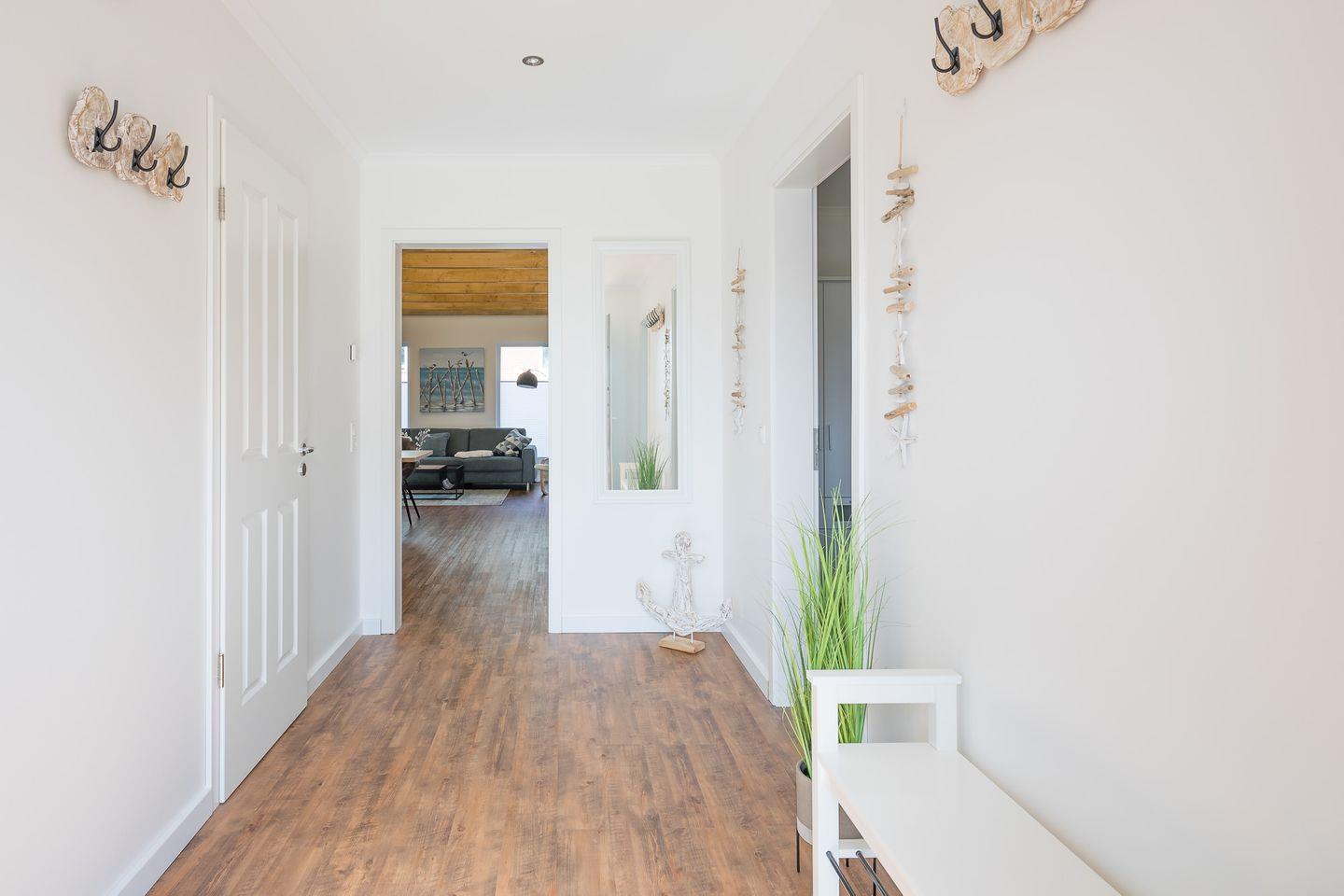 Das ca. 120 qm große ebenerdige Fascherhus begeistert durch seinen hellen, großzügigen und modernen Charme mit gekonnt gesetzen Farbakzenten.