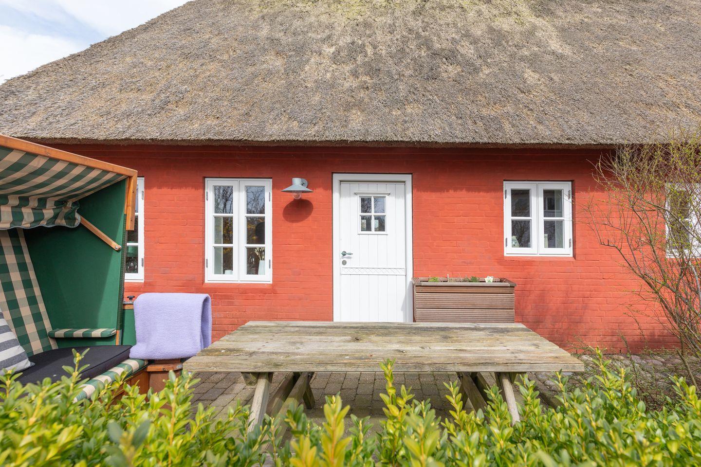 Erleben Sie das reetgedeckte Hyggehüs in Risum-Lindholm mit moderner Ausstattung, Garten und kostenfreiem WLAN für entspannte Urlaubstage.
