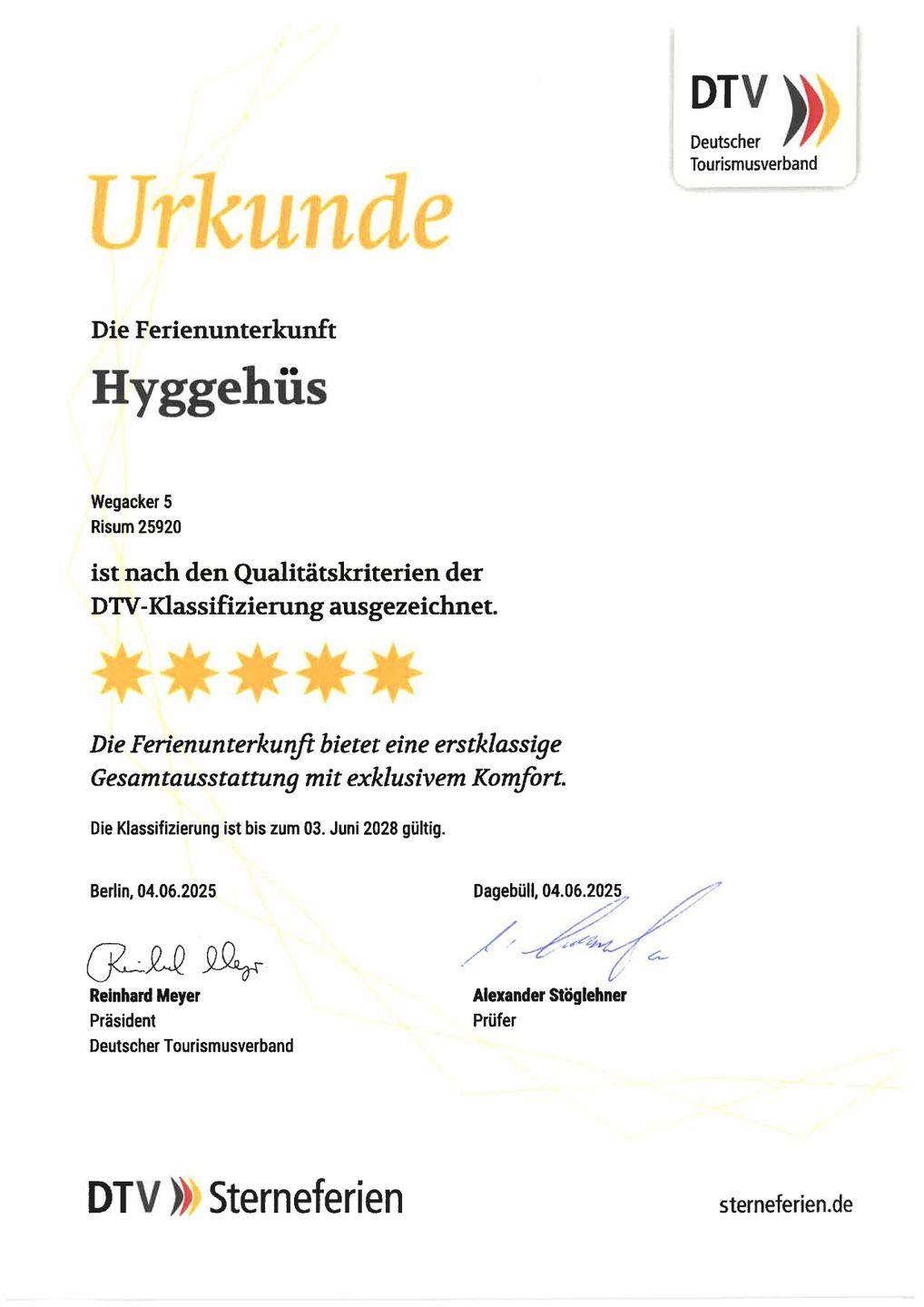 Das Ferienhaus wurde im Juni 2025 mit 5 Sternen vom DTV ausgezeichnet.