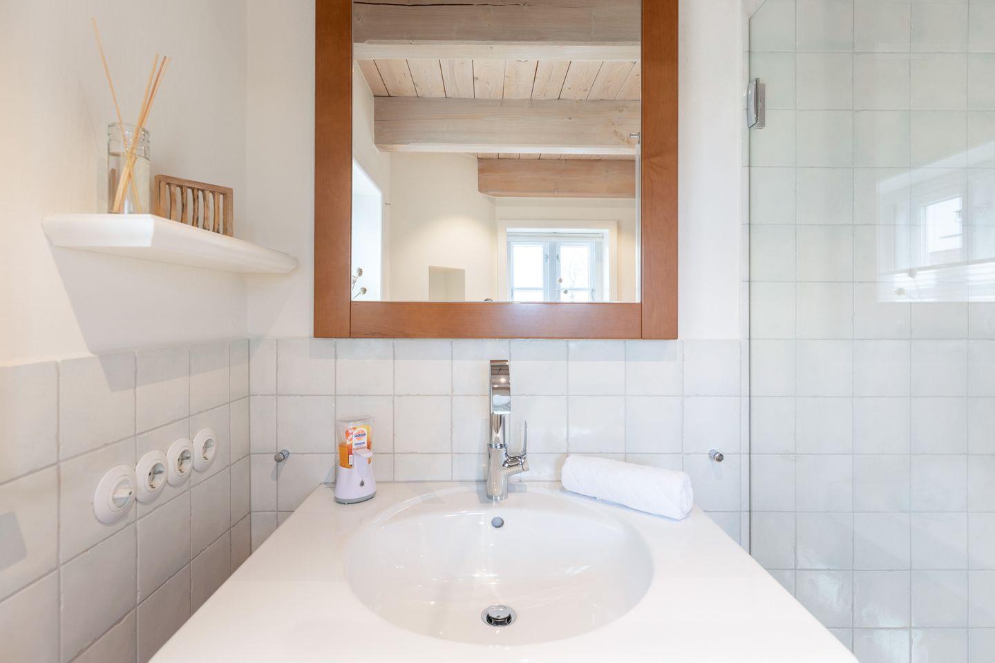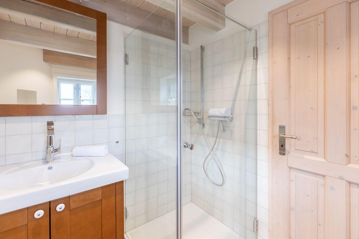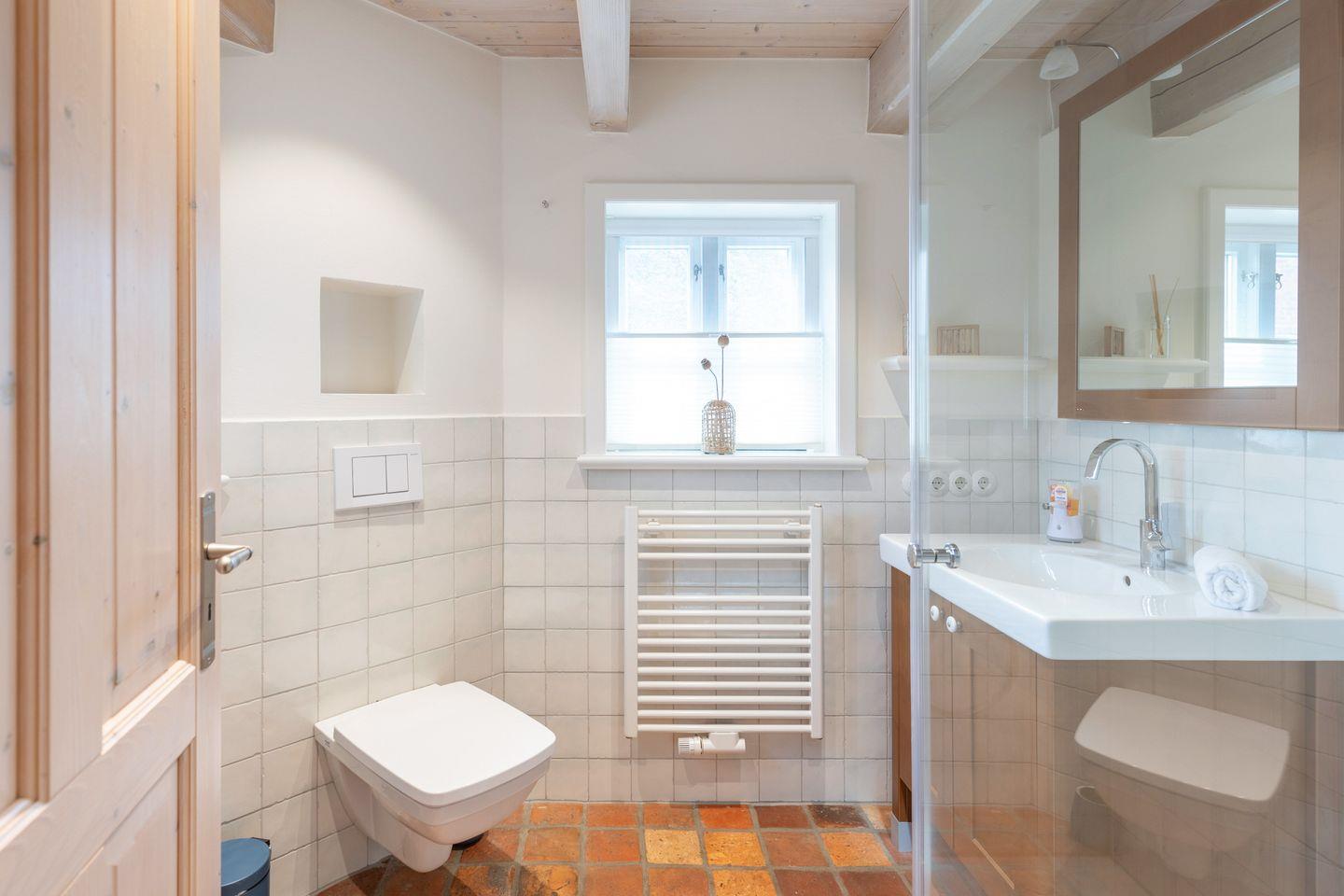 Das Ferienhaus beeindruckt durch seine gemütliche und exklusive Einrichtung mit einem wunderschönen offenen Wohnraum und angrenzendem Essbereich. Direkt links im Eingangsbereich befindet sich das moderne Badezimmer mit einer ebenerdigen Dusche, einem WC und einem Waschbecken. Die vollausgestattete Küche ist zum Wohnraum hin geöffnet und bietet alles, was Sie für ein gemeinsames Kocherlebnis benötigen: Induktionsherd, Backofen, Kühlschrank mit Gefrierfach, Geschirrspülmaschine, Kaffeemaschine (Filtergröße 4) und Espressomaschine (DeLonghi Essenza Nespresso), Wasserkocher, Toaster, ausreichend Geschirr und Kochutensilien. Am Esstisch kann der Tag gemeinsam geplant werden. Im Wohnraum selbst finden Sie einen Samsung - Fernseher (50 Zoll), ein Eck-Sofa und einen Sessel zum Entspannen an gemütlichen Abenden.