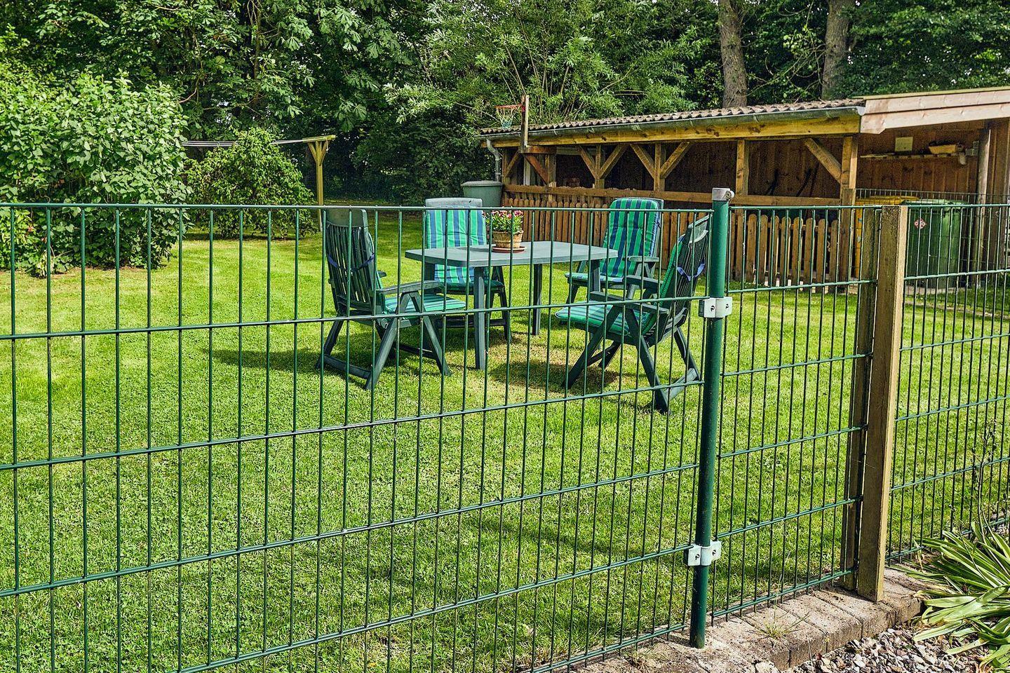 Das Feriendomizil verfügt auf 2 Ebenen über 1 Wohnraum mit einem Kaminofen, 1 Küche, 3 Schlafräume und 2 Bäder. Es steht auf einem ca. 2.000 m² großen Grundstück, wovon ca. 800 m² komplett eingezäunt sind.