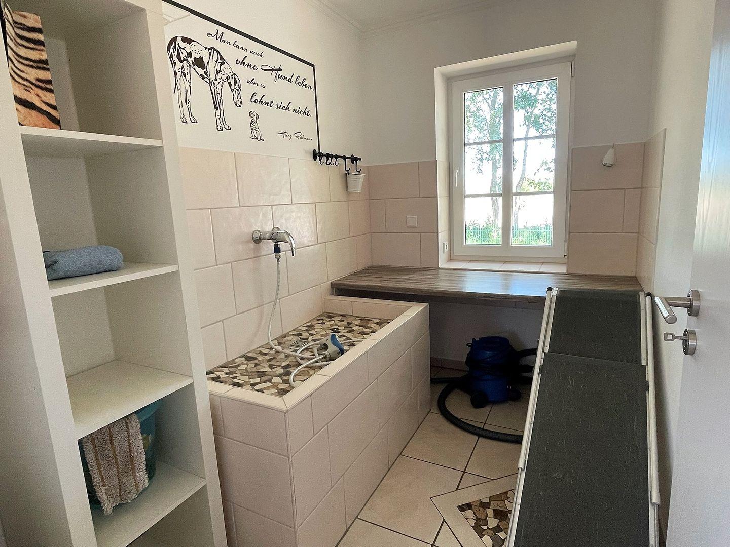 Das Ferienhaus "Lena" bietet auch spezielle Annehmlichkeiten für Hundebesitzer. Ein Wellnessraum für Hunde mit Dusche und Föhn ermöglicht es Ihnen, Ihren pelzigen Freund nach einem Spaziergang am Strand frisch zu machen.