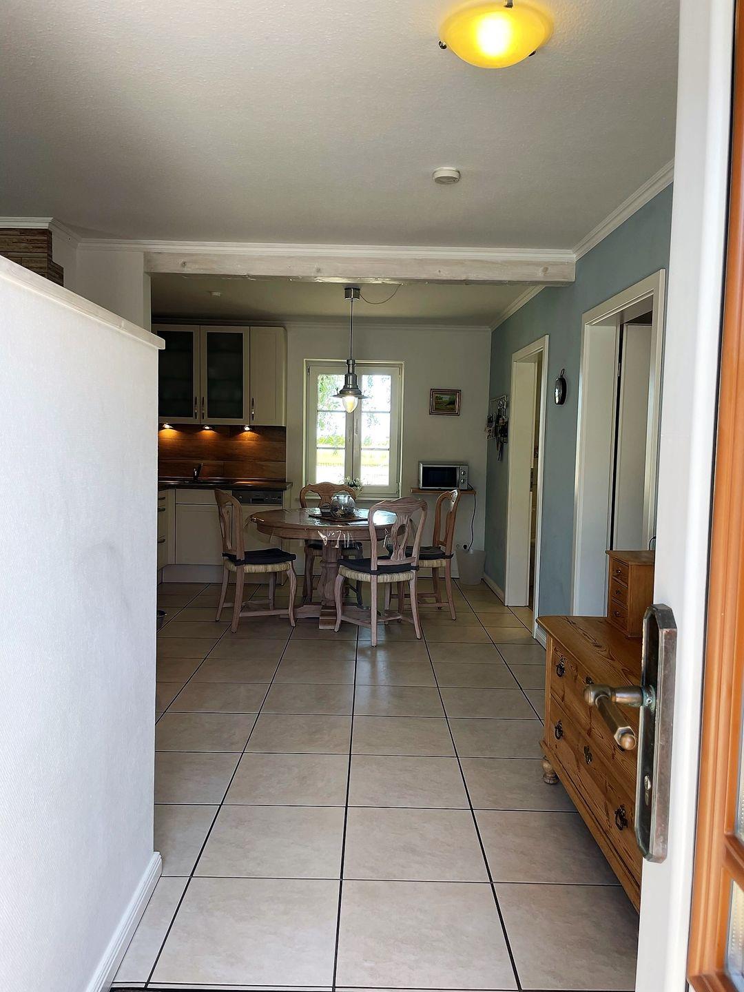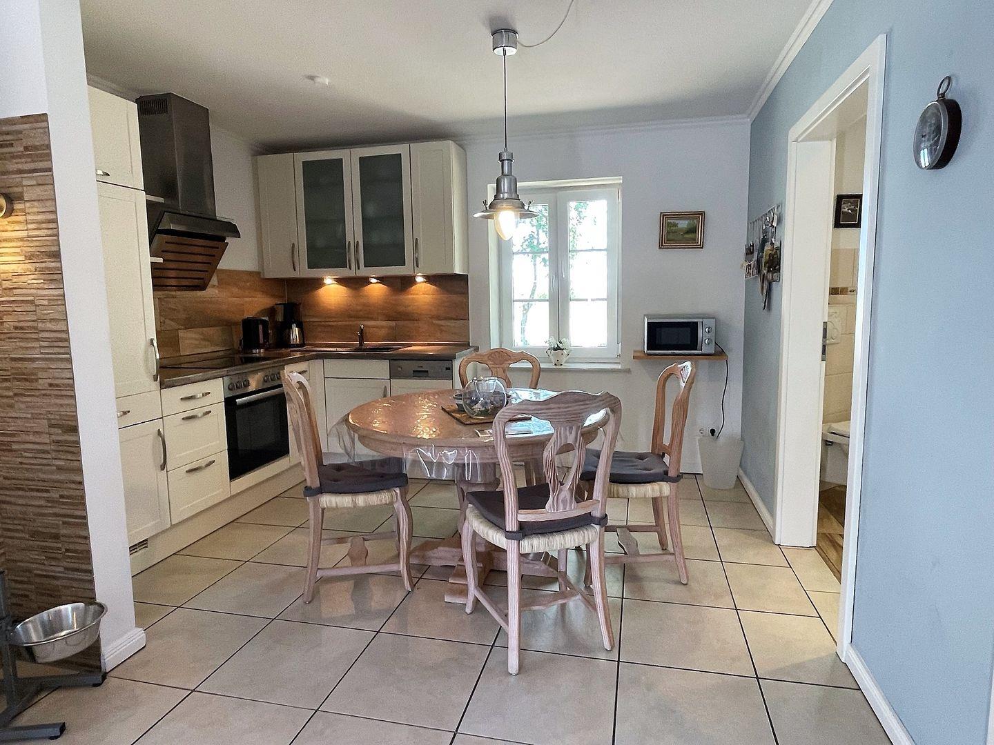 In der Ferienwohnung ist alles vorhanden, was Sie für einen angenehmen Aufenthalt benötigen: WLAN, TV, eine Waschmaschine (5€/Ladung), und sogar eine Fußbodenheizung für kühle Tage sorgen für zusätzlichen Komfort. Die hochwertige Ausstattung umfasst eine offene Küche mit Spülmaschine, Mikrowelle, Backofen und allem, was Sie brauchen, um leckere Mahlzeiten zuzubereiten. Das moderne Badezimmer ist mit einer bodengleichen Dusche, WC und Waschbecken ausgestattet.