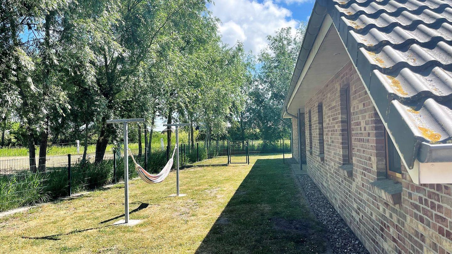 Die große Terrasse lädt dazu ein, die frische Luft zu genießen und entspannende Stunden im Freien zu verbringen. Gartenmöbel stehen bereit, damit Sie bei einem Grillabend am kohlebetriebenen Grill das Zusammensein feiern können. Der große, auf einer Höhe von 1,20m eingezäunte Garten bietet viel Platz zum Spielen für die Kinder. Der Strandkorb für Gäste und ein eigener Strandkorb für den Hund sorgen für Gemütlichkeit und Ruhe. Hier können Ihre Kinder sorglos spielen, während Sie die Natur in voller Pracht erleben. Die ruhige und ländliche Lage garantiert erholsame Tage abseits des hektischen Lebens.