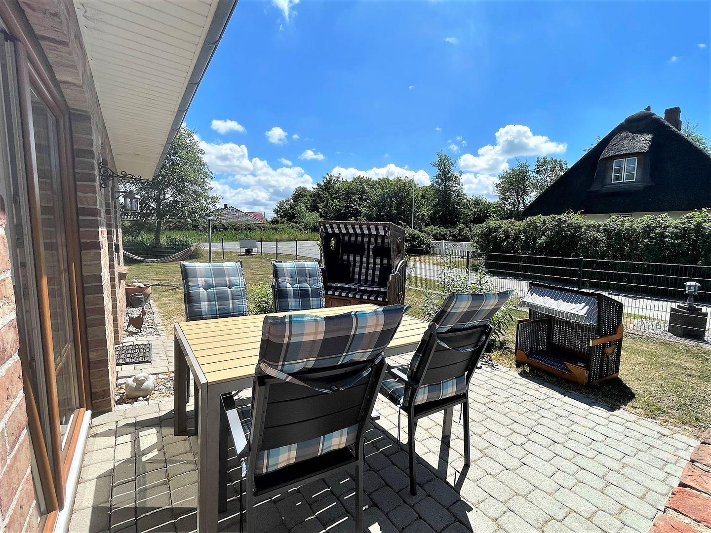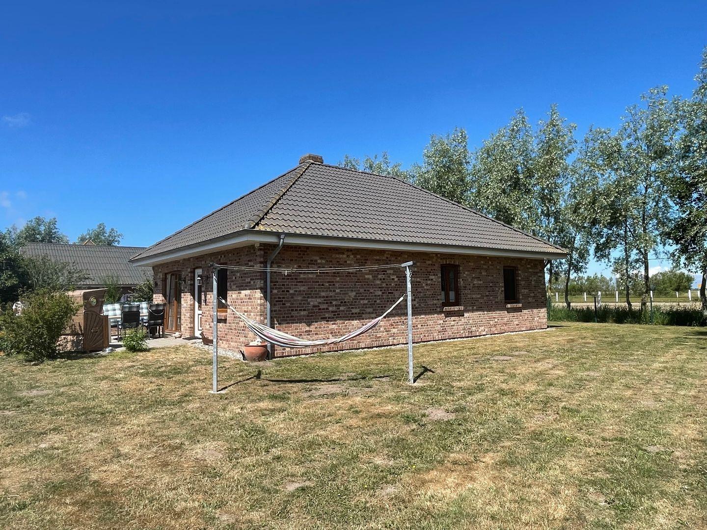 Die große Terrasse lädt dazu ein, die frische Luft zu genießen und entspannende Stunden im Freien zu verbringen. Gartenmöbel stehen bereit, damit Sie bei einem Grillabend am kohlebetriebenen Grill das Zusammensein feiern können. Der große, auf einer Höhe von 1,20m eingezäunte Garten bietet viel Platz zum Spielen für die Kinder. Der Strandkorb für Gäste und ein eigener Strandkorb für den Hund sorgen für Gemütlichkeit und Ruhe. Hier können Ihre Kinder sorglos spielen, während Sie die Natur in voller Pracht erleben. Die ruhige und ländliche Lage garantiert erholsame Tage abseits des hektischen Lebens.