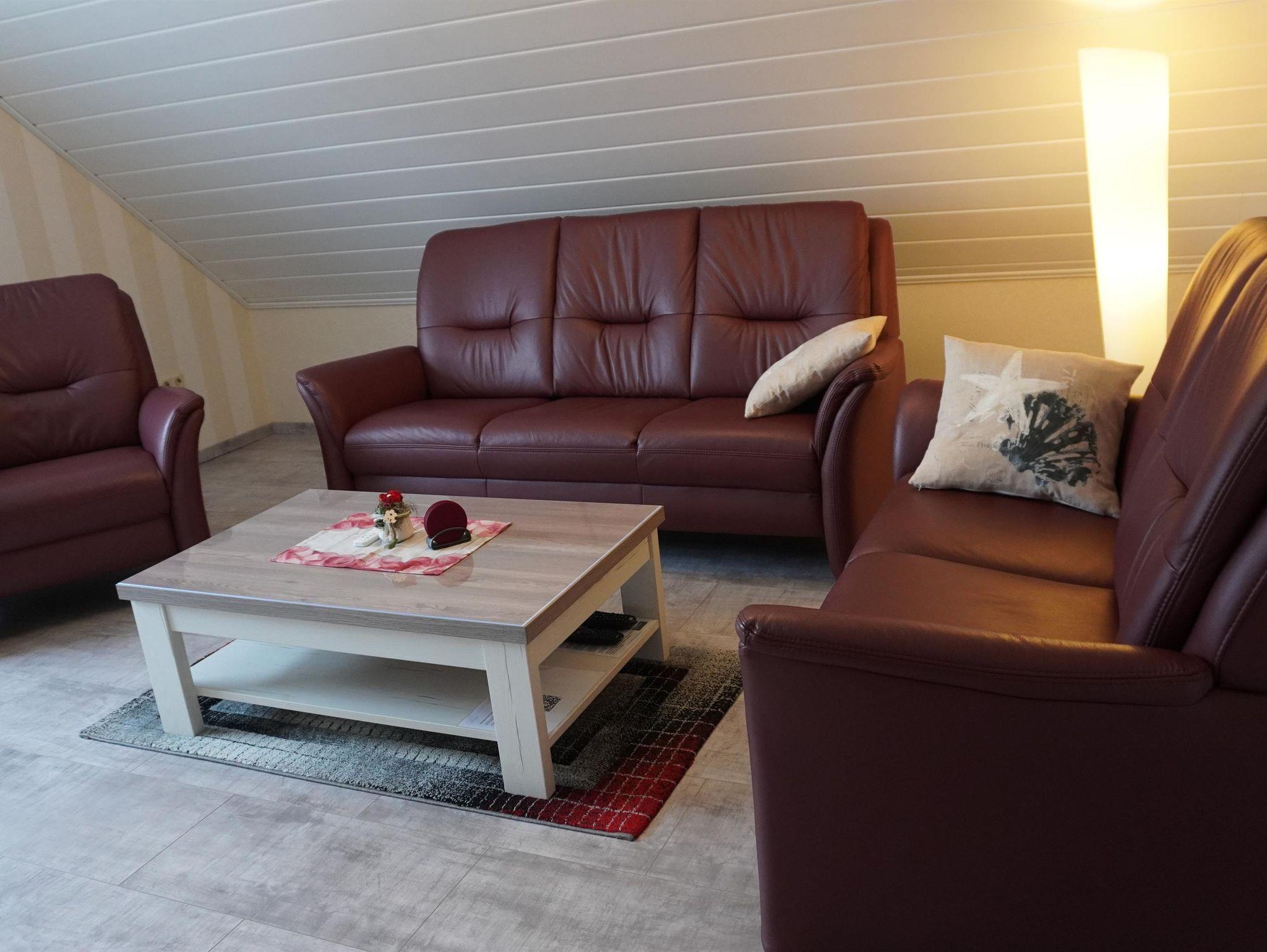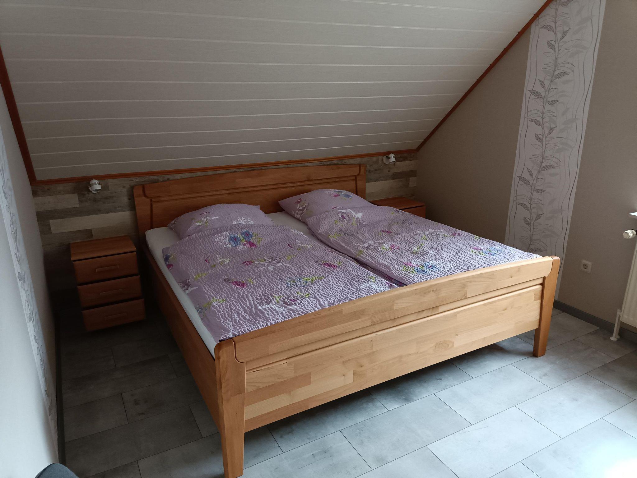 unsere Nichtraucher Ferienwohnung befindet sich in ruhiger Lage im Obergeschoss unseres Einfamilienhauses. Im Garten werden Sie Gartenmöbel und eine Schaukel für unsere kleinen Gäste vorfinden. Des Weiteren sind ein PKW-Einstellplatz sowie eine Unterstellmöglichkeit für Ihre mitgebrachten Fahrräder vorhanden. Außenrollläden sind vorhanden. Ein Spielplatz befindet sich in unmittelbarer Nähe. Einkaufsmöglichkeiten, Bäckerei und Restaurants in ca. 4 km Entfernung.