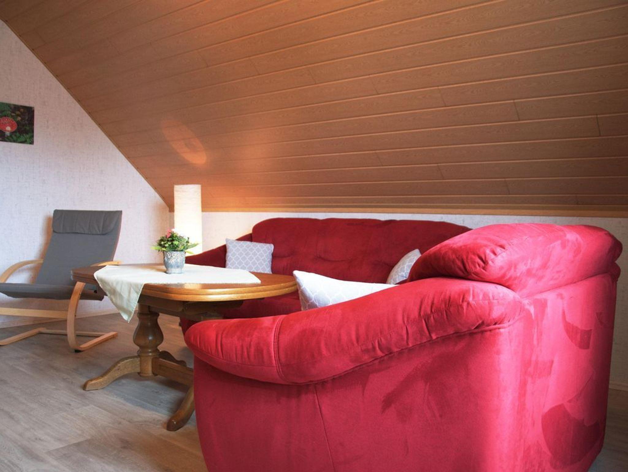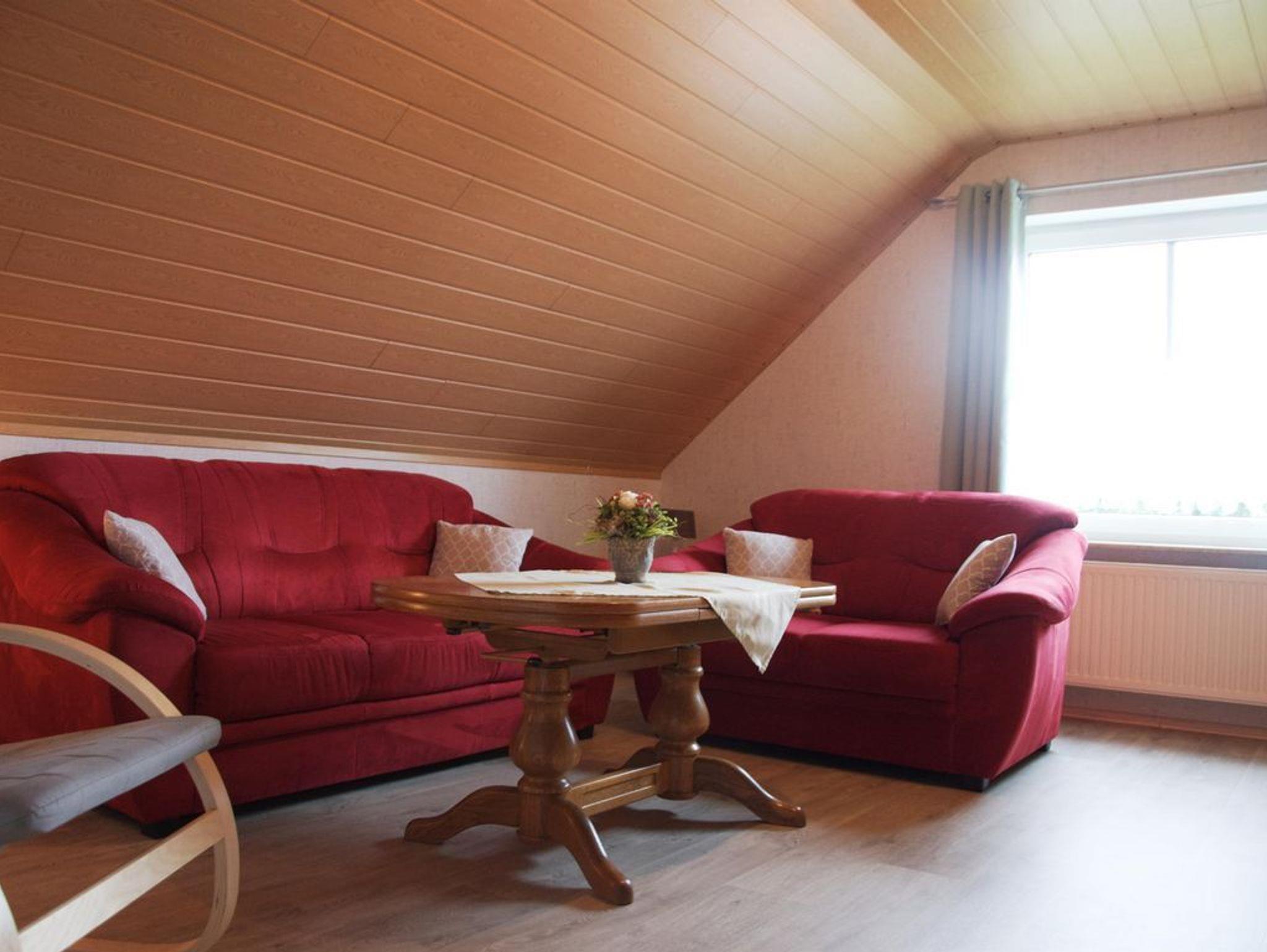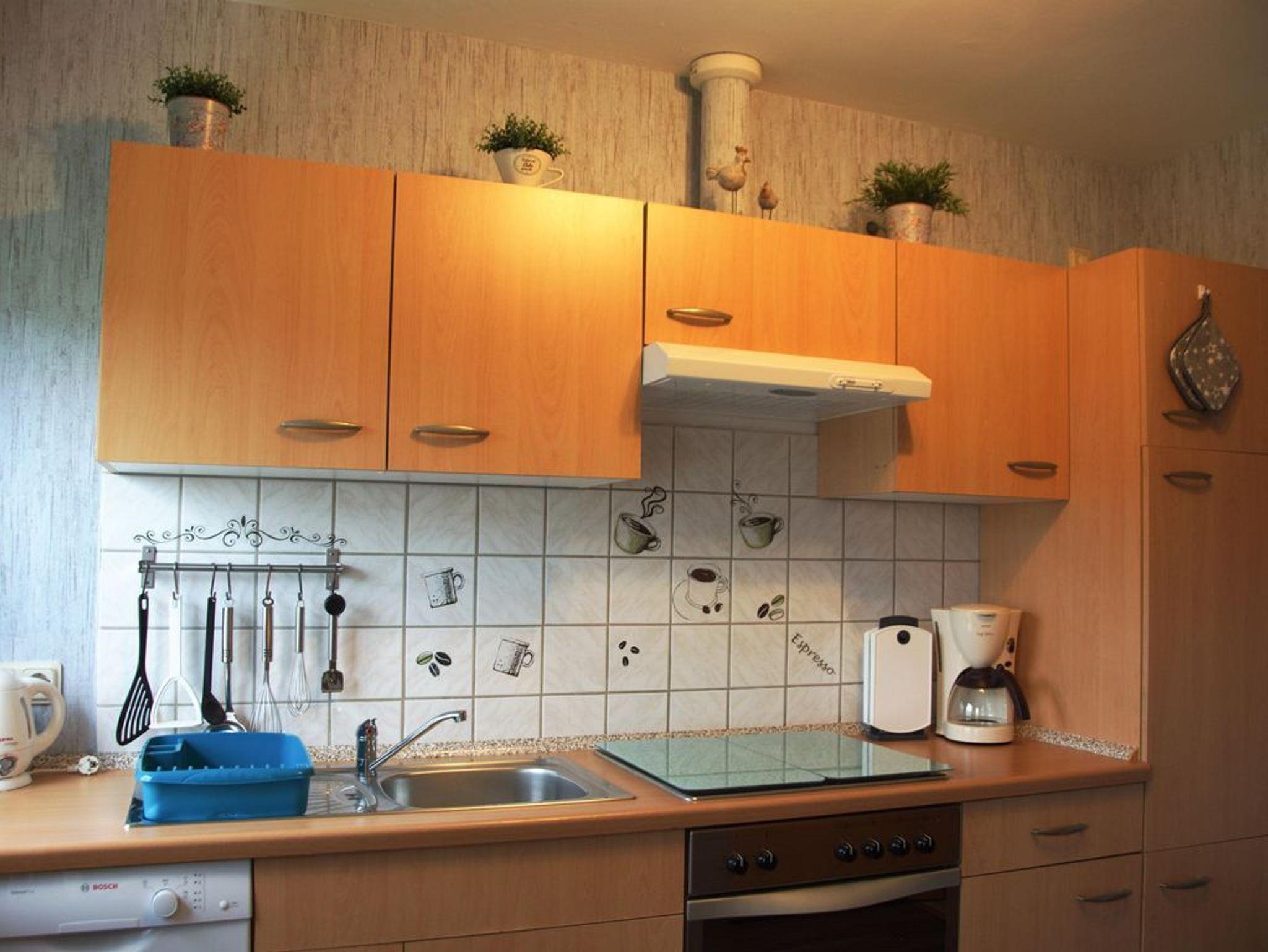 Eine sehr schöne und gemütlich eingerichtete Ferienwohnung, ideal für 3 bis 4 Personen. Im Obergeschoss befinden sich zwei Schlafräume: ein Zimmer mit einem Doppelbett und ein weiteres mit einem französischen Bett. Die Wohnung verfügt außerdem über eine separate Küche, ein Badezimmer mit Dusche/WC sowie ein großzügiges Wohnzimmer.