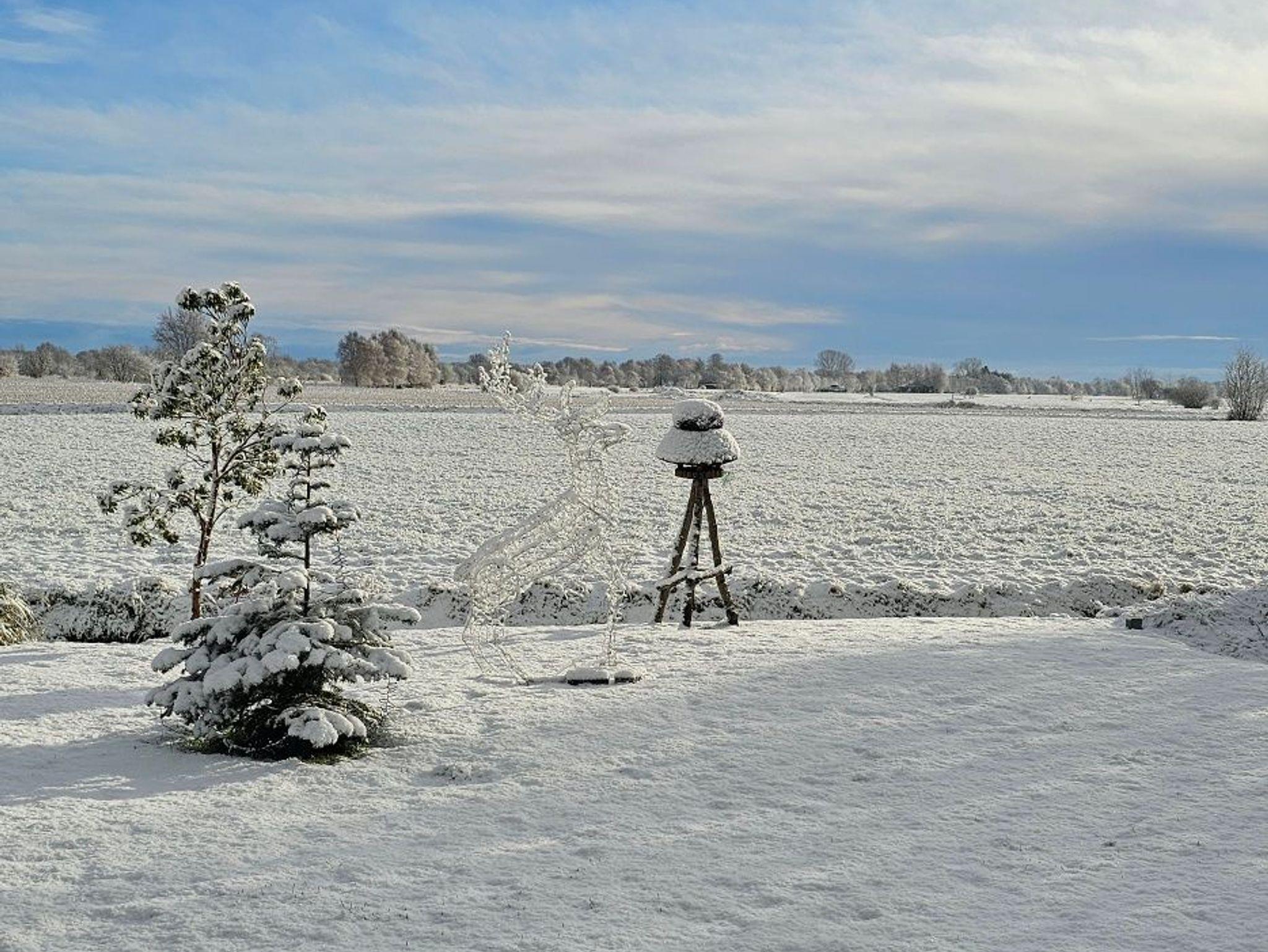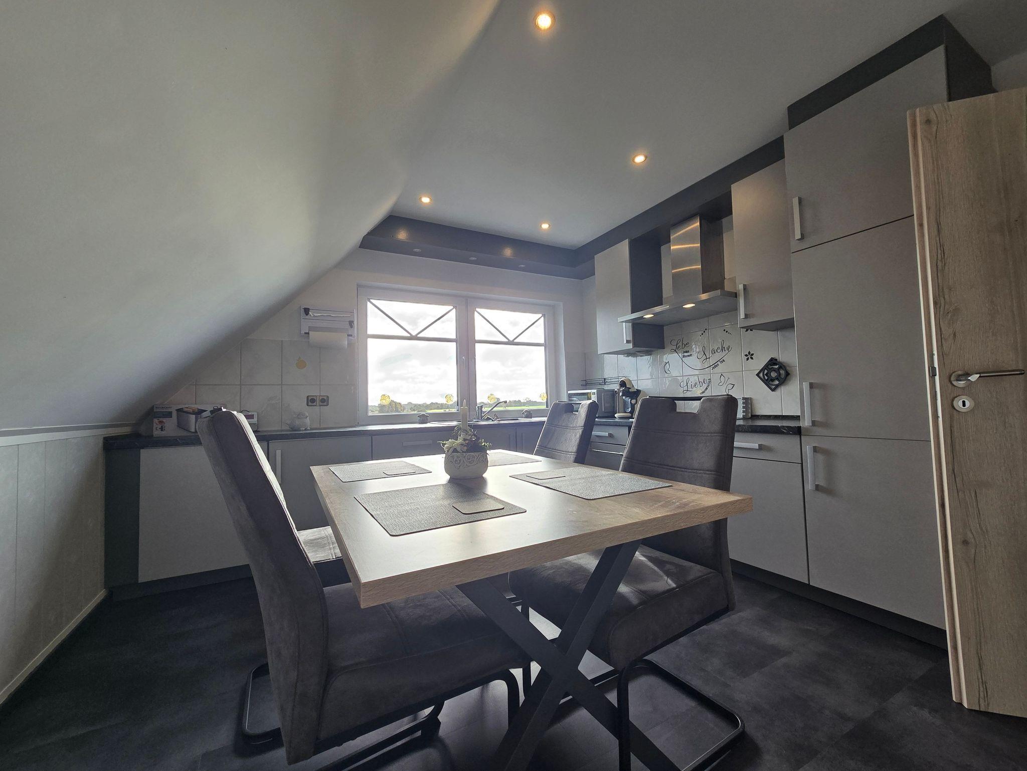 Moderne Ferienwohnung im Obergeschoss mit weitem Blick über ostfriesische Felder in Südbrookmerland.