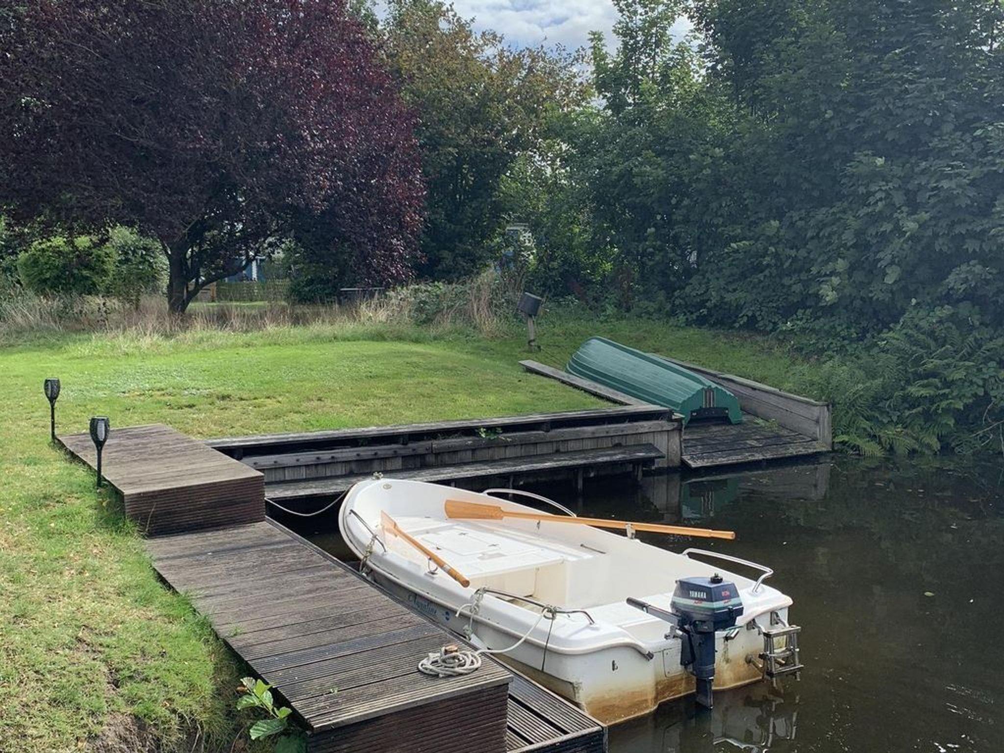 Für Wassersportliebhaber stehen ein Ruderboot und zwei Kanus bereit, die das Erkunden der Umgebung vom Wasser aus ermöglichen. Die überdachte Veranda ist mit bequemen Gartenmöbeln ausgestattet und der ideale Ort, um den Ausblick auf den Bootshafen zu genießen. Bitte beachten Sie, dass das Grundstück nicht umzäunt ist.