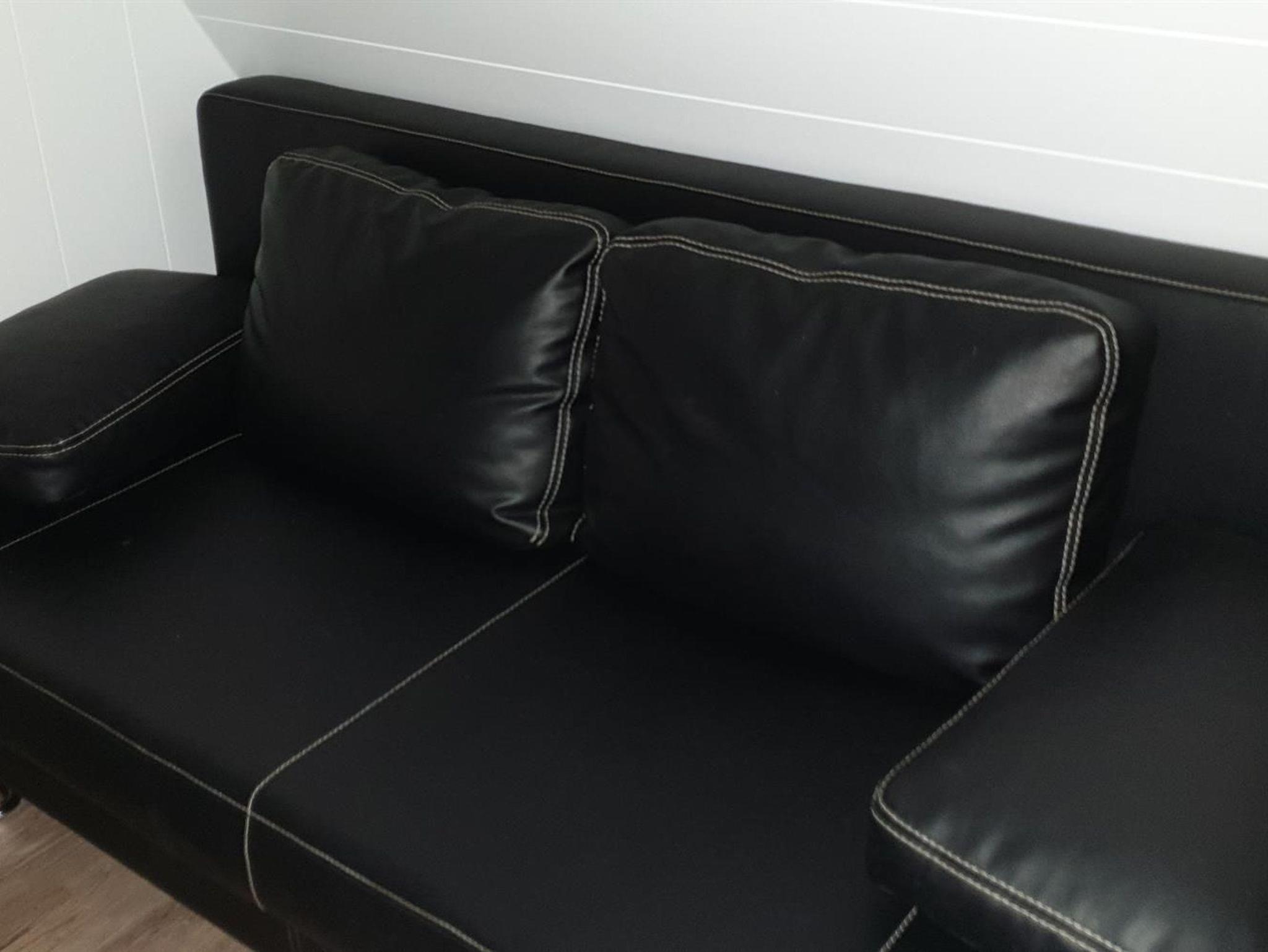 Die beiden Schlafzimmer befinden sich im Obergeschoss. Das größere Schlafzimmer ist mit einem breiten, stabilen Doppelbett (2 m x 1,8 m) inklusive Nachttischen und Leselampen ausgestattet. Im kleineren Schlafzimmer finden Sie ein ausklappbares Couchbett mit einer Liegefläche von ca. 1,5 m, das Platz für ein bis zwei Personen bietet. Eine zusätzliche Matratze kann bei Bedarf genutzt werden. Beide Zimmer verfügen über Kofferablagen mit Schubladen, und eine Vorhangnische zwischen den Zimmern bietet zusätzlichen Stauraum und eine Garderobenstange. Handtücher und Bettwäsche sind auf Wunsch buchbar.