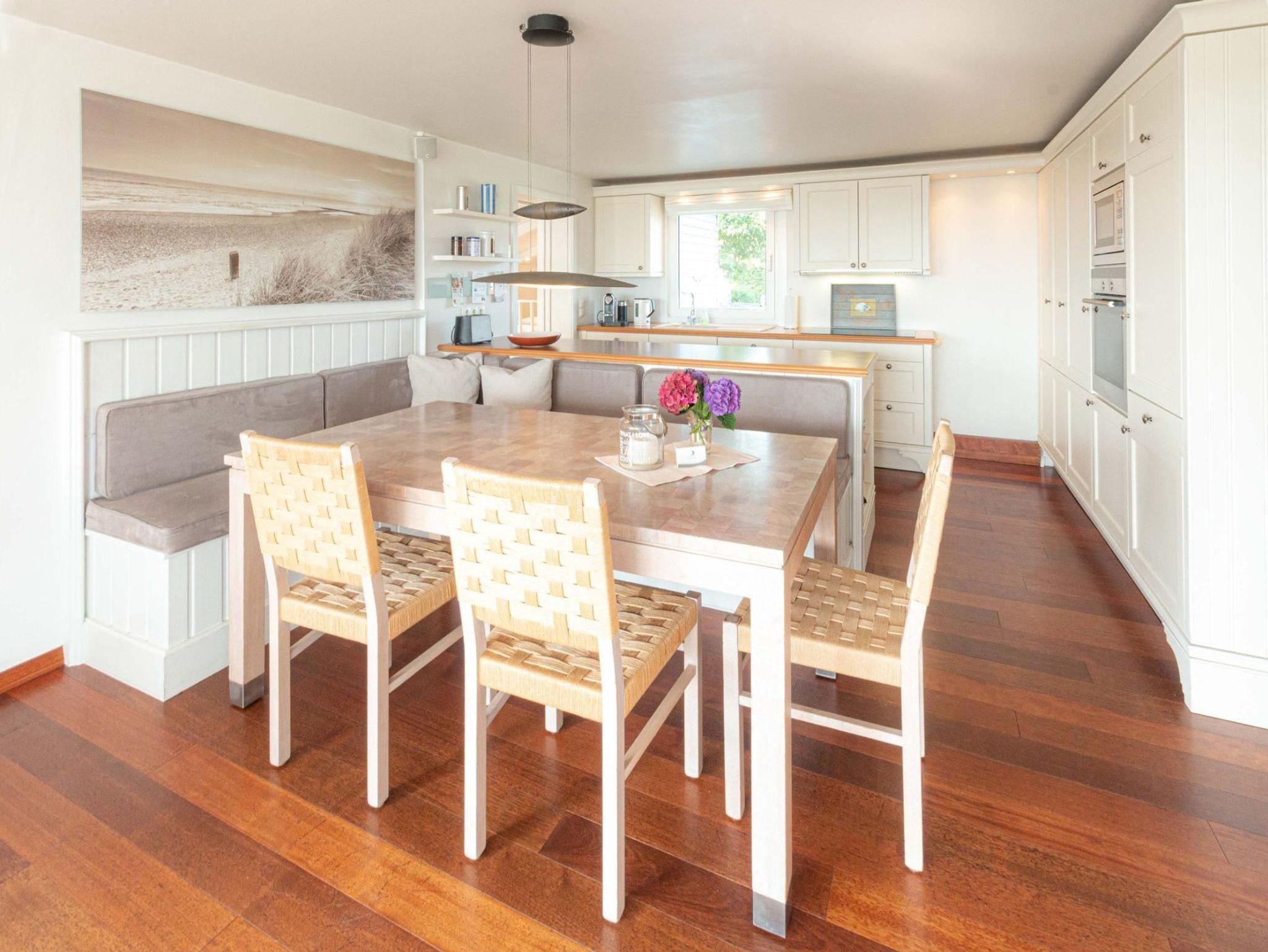 Dieses Ferienhaus bietet Ihnen eine hochwertige Ausstattung und großzügige Räume, die für einen entspannten Aufenthalt sorgen. Die große, komplett eingerichtete Küche verfügt über alle modernen Annehmlichkeiten wie Geschirrspüler, E-Herd, Backofen, Mikrowelle und weitere Elektrogeräte ideal für Hobbyköche und gemütliche Mahlzeiten.