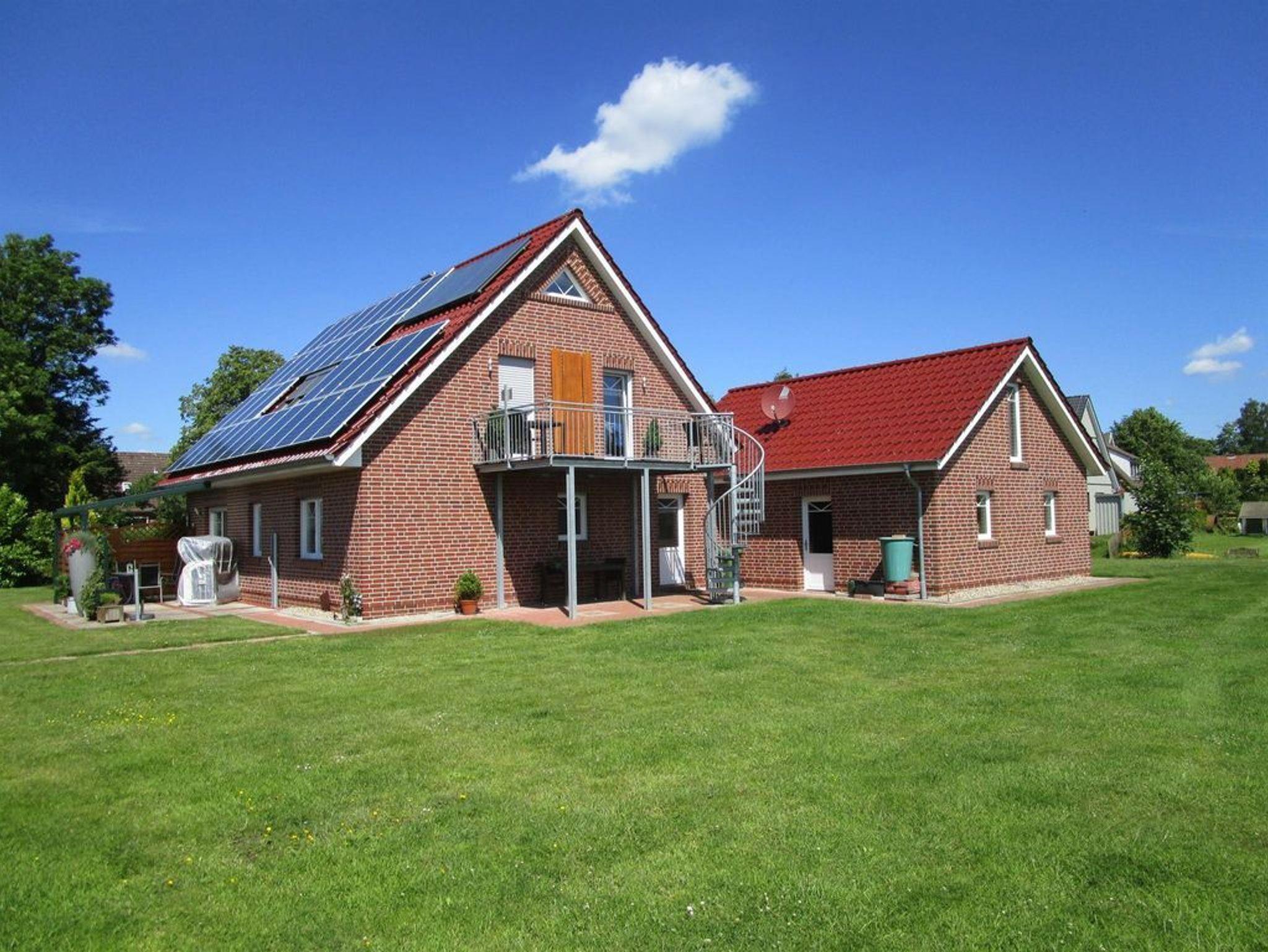 Das Haus aus dem Baujahr 2011, bietet auf einem etwa 1000 m² großen Grundstück viel Platz für einen entspannten Aufenthalt. Das Haus verfügt über zwei abgeschlossene Wohneinheiten und liegt direkt am Kanal mit eigenem Bootssteg. Der unverbaubare Ausblick nach Osten über die weite Landschaft bis hin zum Großen Meer schafft eine idyllische Atmosphäre.
