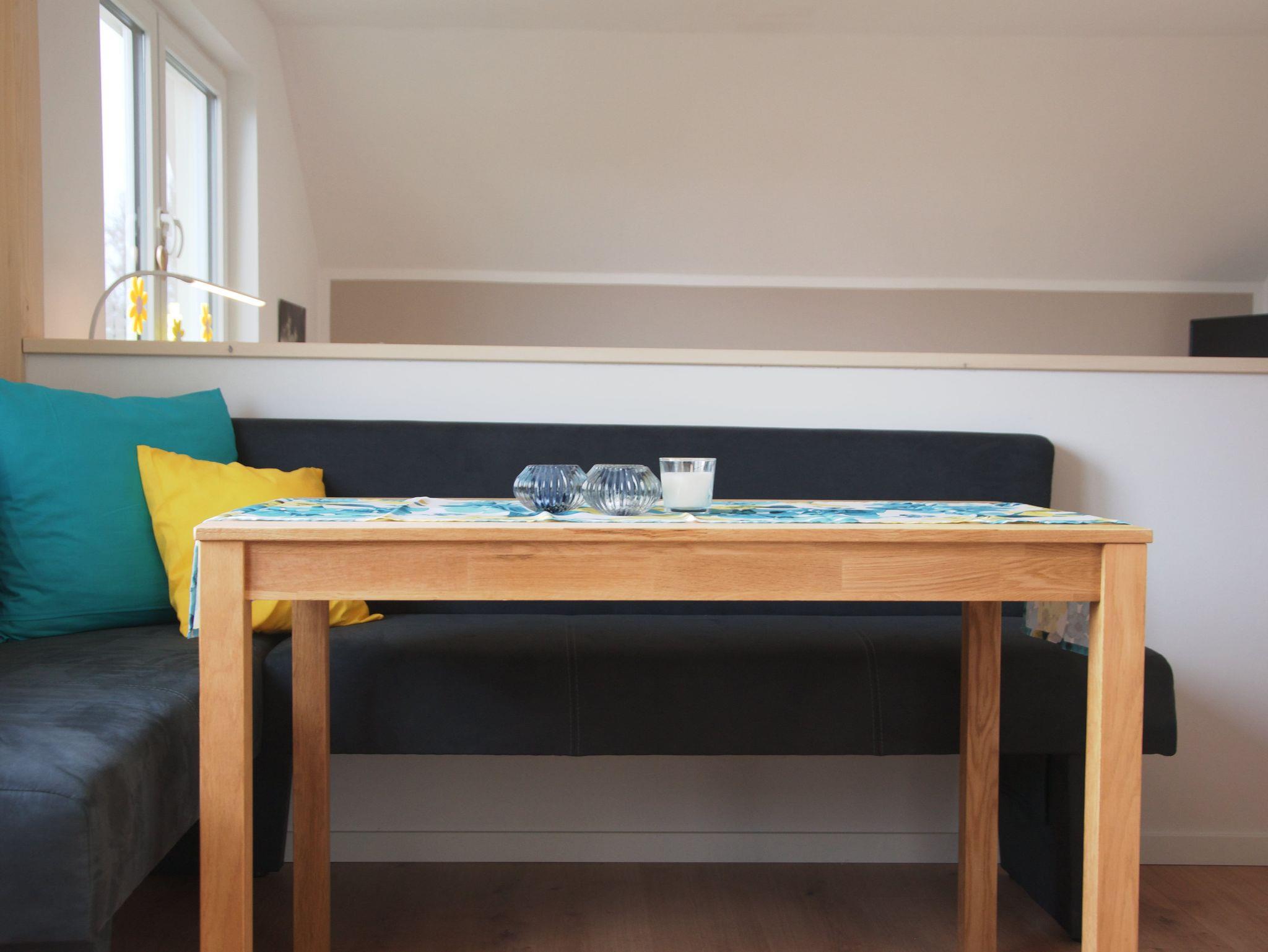 Treten Sie ein und fühlen Sie sich in einer offenen Wohngestaltung auf 60 Quadratmetern Wohnfläche wie Zuhause und doch im Urlaub. Die Küche und Essbereich sind in Kombination mit dem Wohnzimmer aber durch eine Thekenwand getrennt, wodurch ein stilvolles Trennmittel geschaffen wird. Lichtdurchflutet und hell eingerichtet. Mit den passenden Farben trifft sich eine Kombination zum angenehmen Aufenthalt.