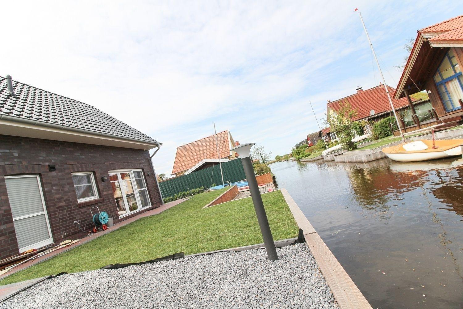 Die direkte Wasserlage des knapp 300qm großen Grundstücks an einem Stichkanal vom Großen Meer ist natürlich das Highlight dieses Ferienhauses. Nach nur ca. 200m erreichen Sie über den Wasserweg das Große Meer. Für den Segler haben wir eine segelklare Jolle (Dehler Pfeil mit Steckschwert) mit Großsegel und Fock am eigenen Steg liegen. Ein Paddelboot (ca. 3,00 x 1,30m) kann von den kleinen Matrosen geentert werden. Ein Zweier-Kanu liegt ebenfalls klar im Wasser.