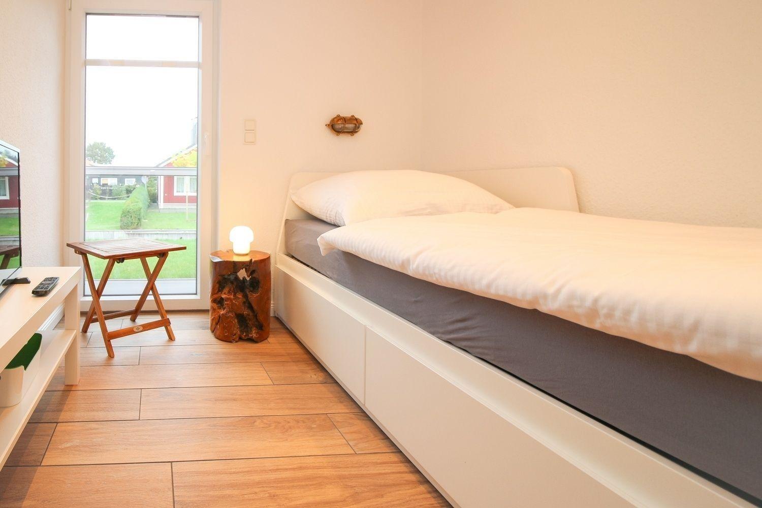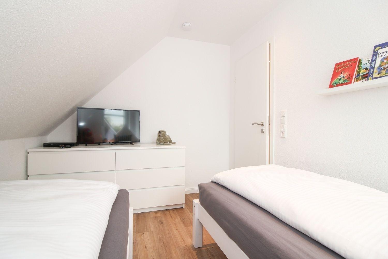 Im zweiten Schlafzimmer befinden sich zwei Einzelbetten, ein Nachttisch und eine Kommode. Ebenso ist ein Flachbild-TV und Blueray-DVD-Player vorhanden.