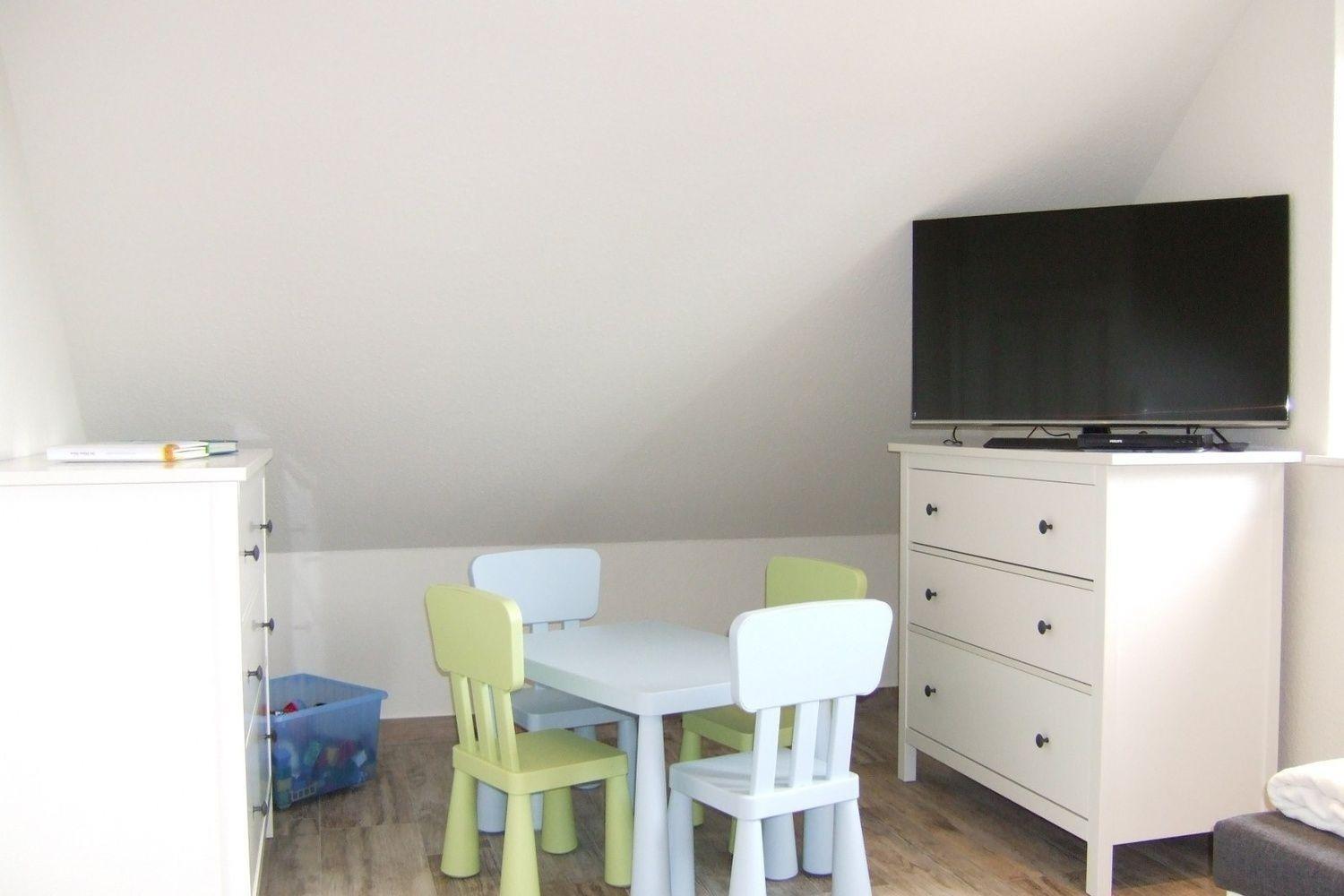 Ein weiteres Schlafzimmer mit Tandembett und großem Flachbildschirm-TV mit DVD-Player bietet für die kleinen Gäste noch eine schöne Spielecke.